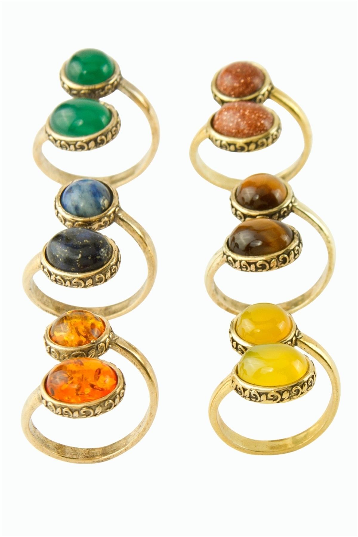 FREEDOM STOREE خاتم أصلي من الحجر الطبيعي بيضاوي الشكل