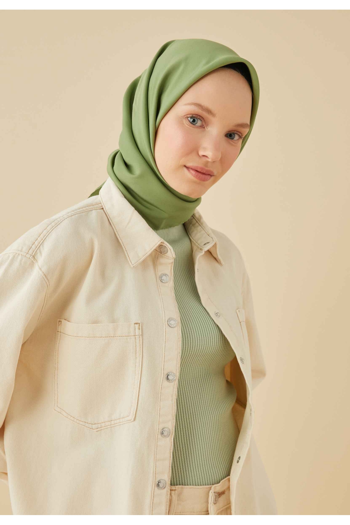 ميزات وشاح حريري قطني كاكي من Fresh