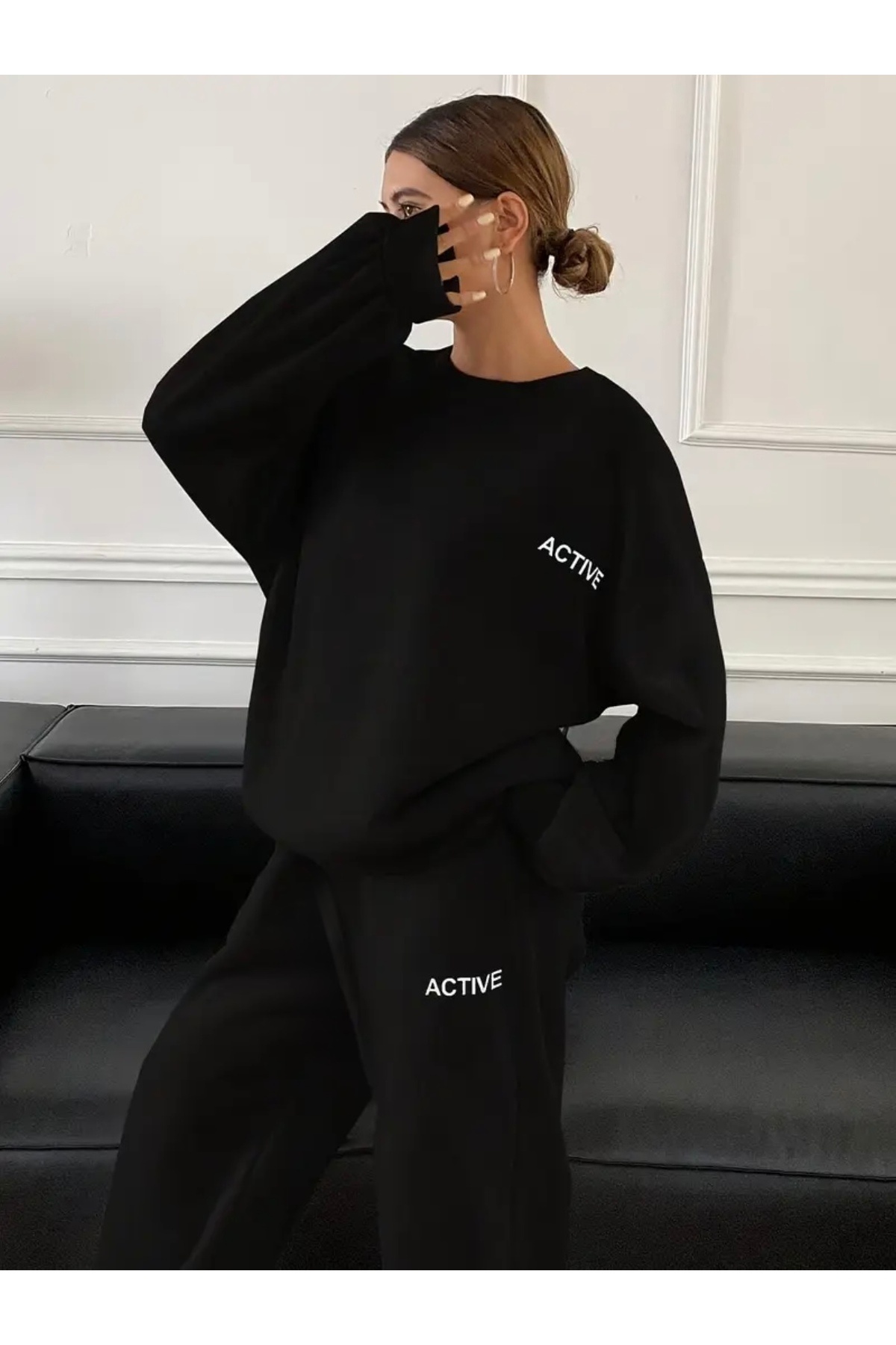 FUFLUNS طقم بدلة رياضية بياقة دائرية كبيرة الحجم للجنسين مطبوعة من ACTIVE
