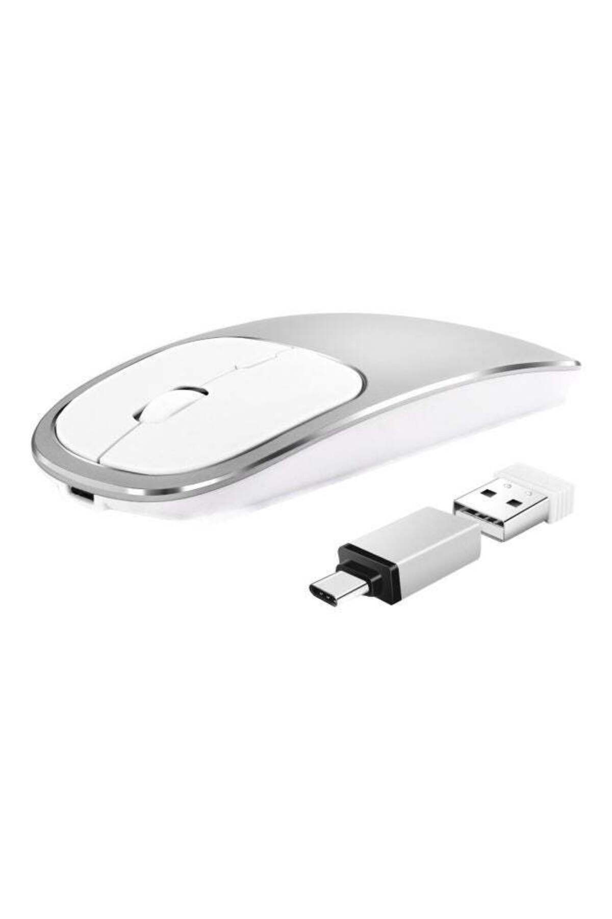 ميزات ماوس بصري لاسلكي قابل لإعادة الشحن من بي جي، فضي/أبيض من fun zone