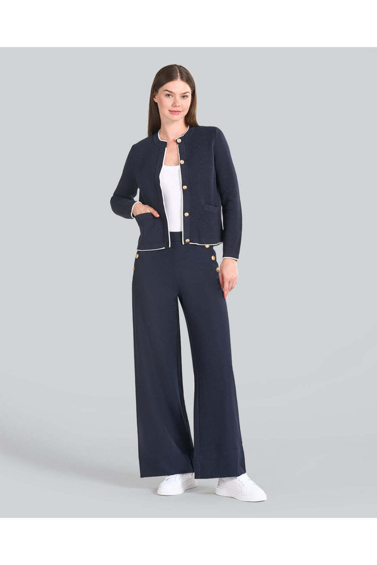 ميزات بنطلون بأزرار وخصر مرتفع من Gant