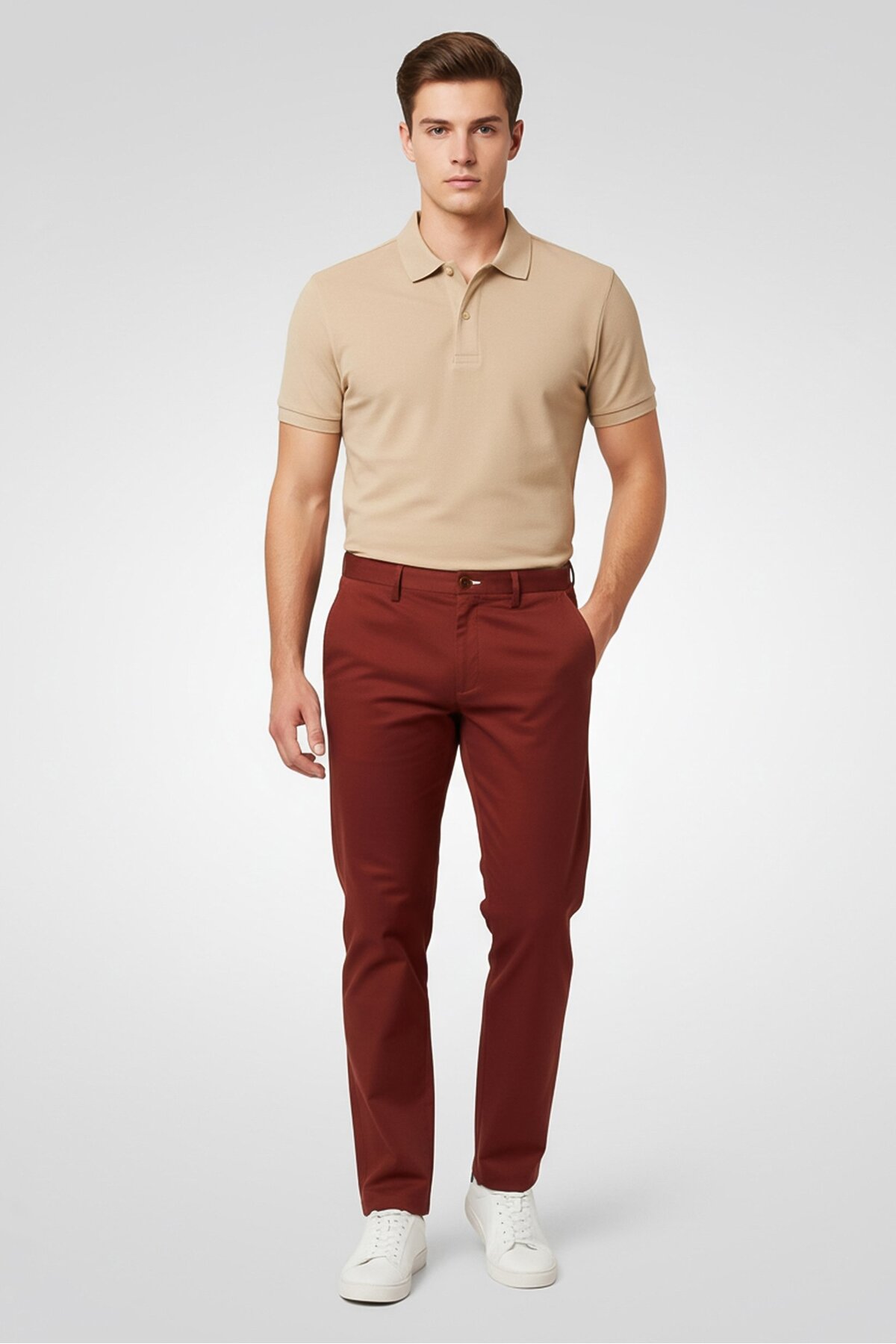ميزات بنطال تشينو رجالي ضيق، لون صدئ داكن من Gant