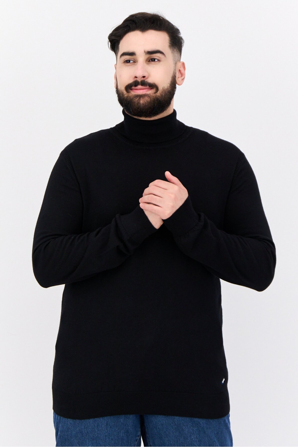 GAS سترة رجالية سادة برقبة مدورة، أسود