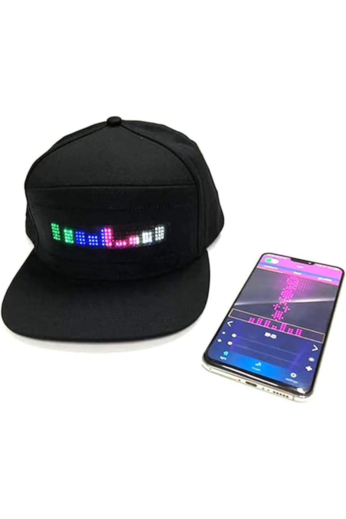 Multi-color programmable LEDs, built-in rechargeable battery with USB charging, adjustable unisex fit, and quick setup via QR code