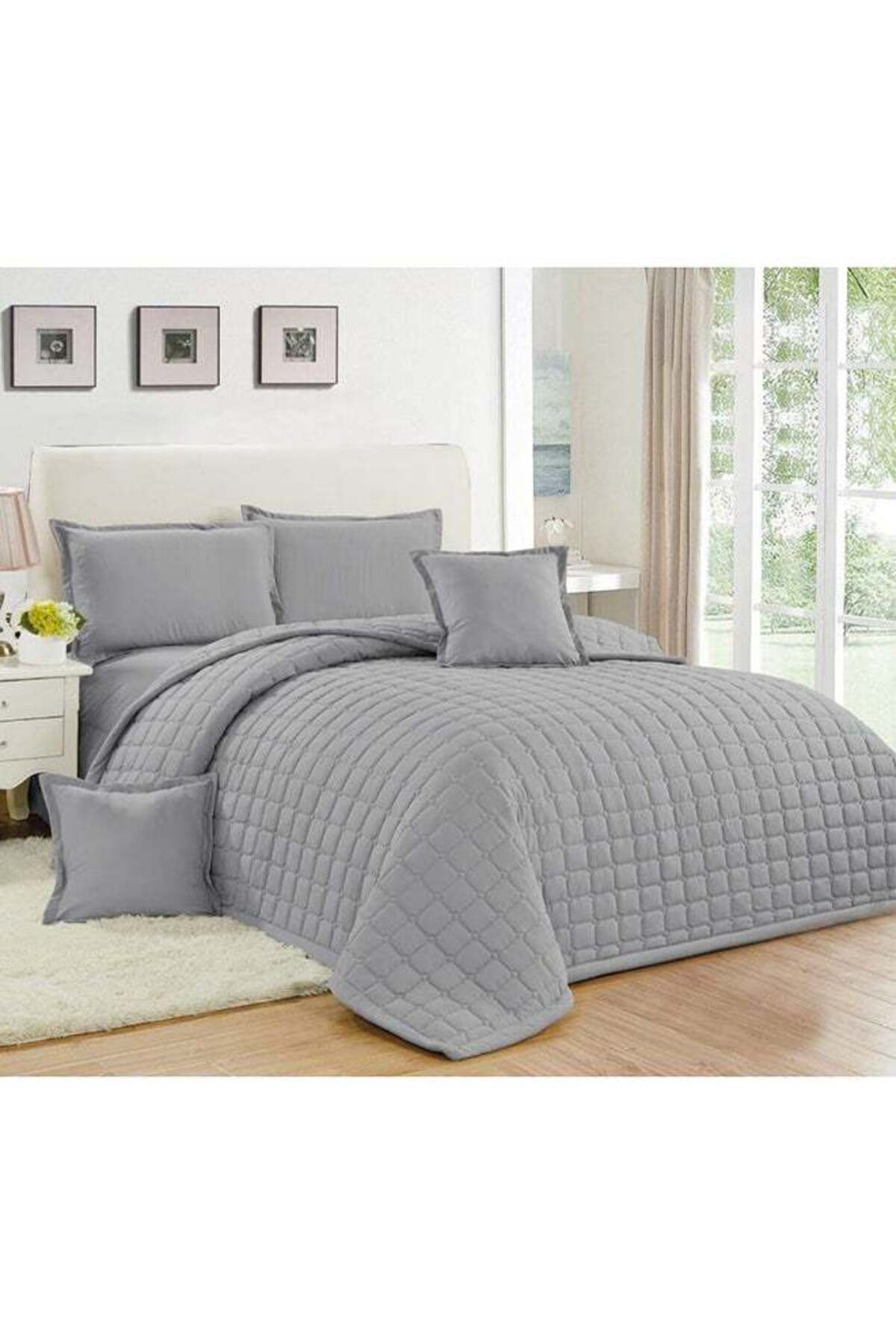 GENERAL طقم لحاف مون المضغوط من 6 قطع من الألياف الدقيقة باللون الرمادي مقاس كينج