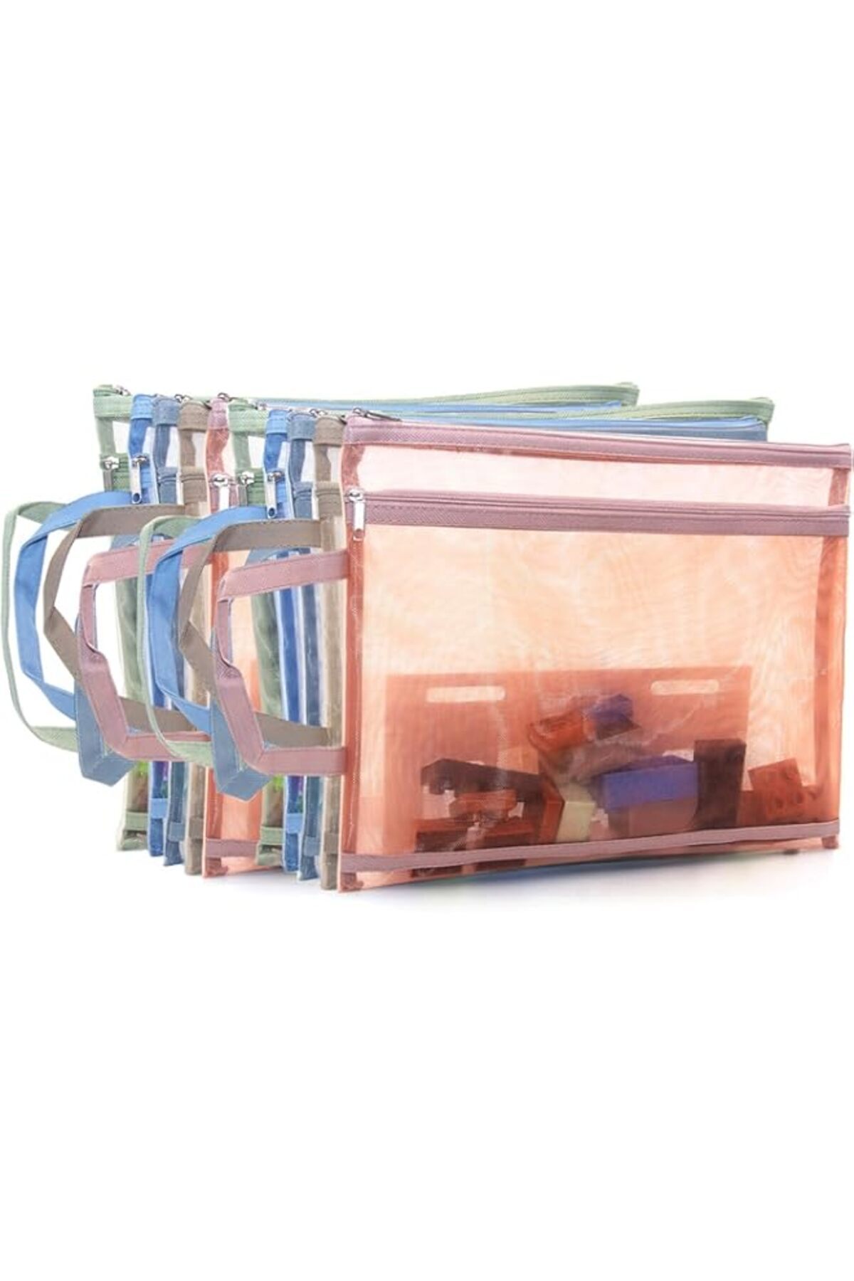 Generic مجموعة من 10 أكياس شبكية بسحاب، أكياس تخزين من النايلون بطبقة مزدوجة مع مقبض، لتنظيم الألغاز، إلخ.