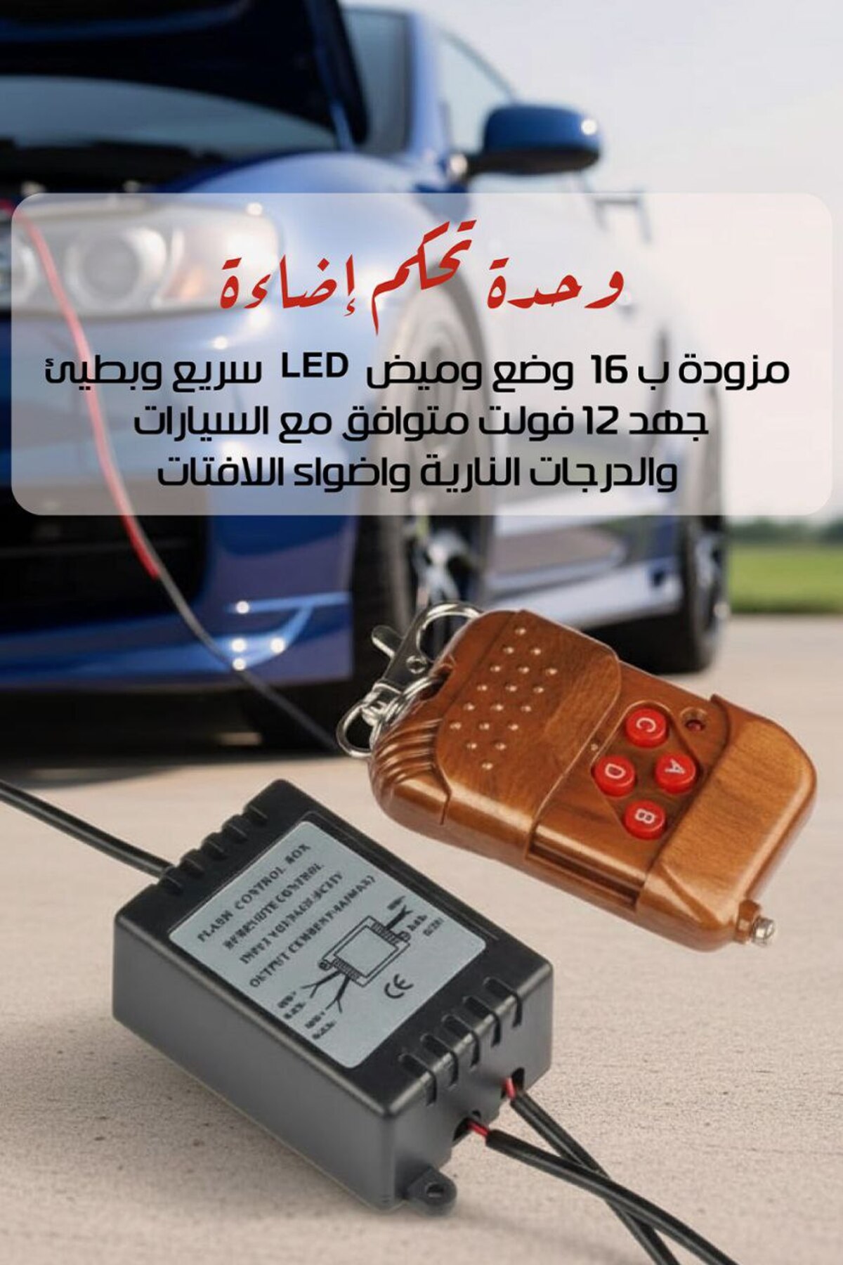 Generic وحدة تحكم إضاءة LED بـ 16 ومضة - وحدة تحكم عن بعد بترددات الراديو لشرائط وأنظمة إضاءة LED بجهد 12 فولت