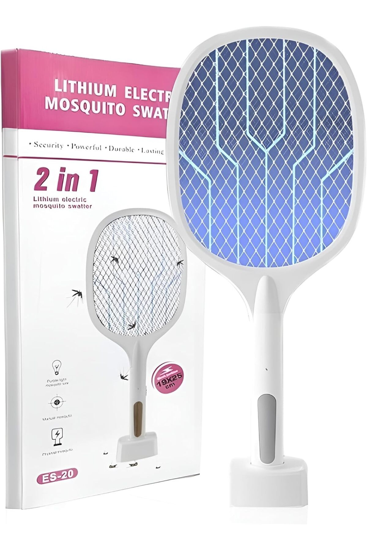 ميزات مضرب كهربائي مزدوج الوضع لقتل الحشرات 2 في 1 من Generic