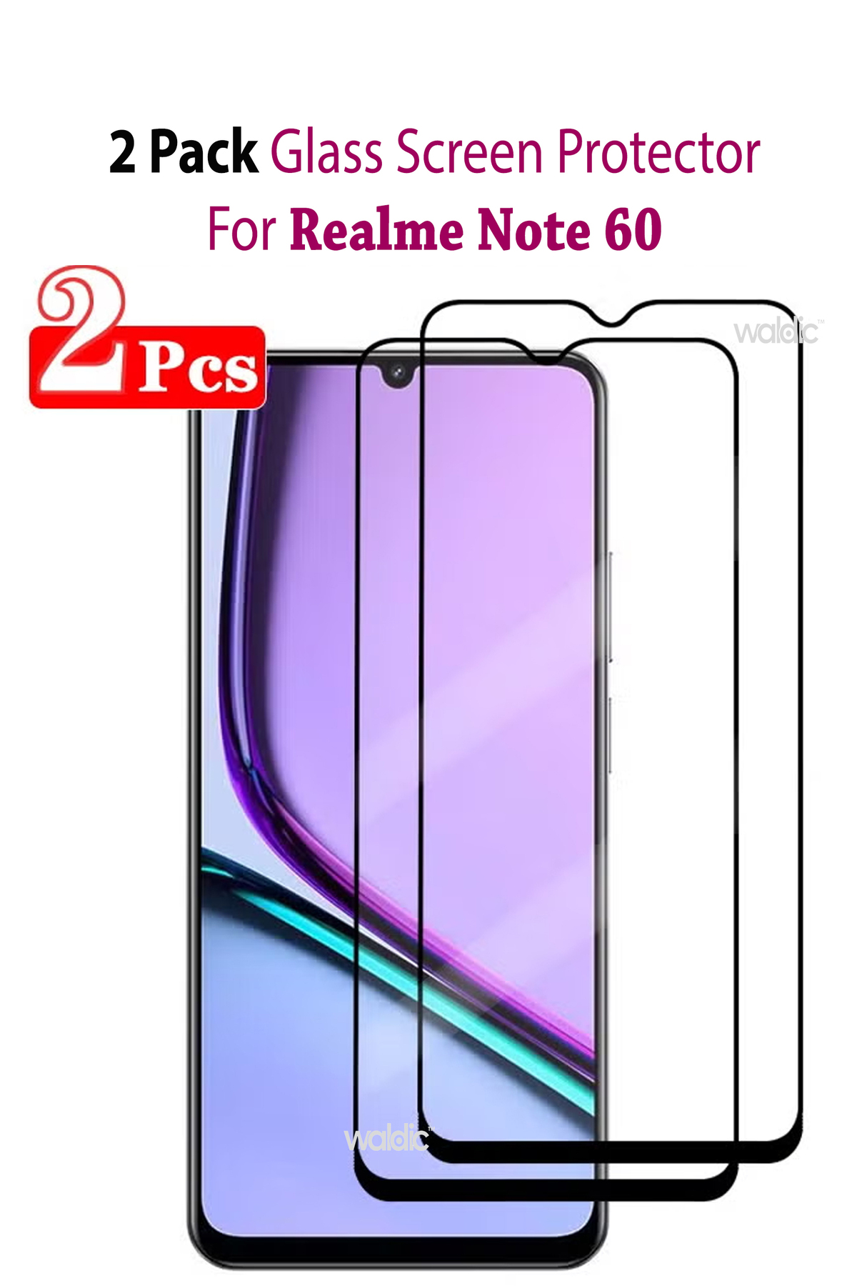 ميزات عبوة من قطعتين من واقي الشاشة الزجاجي المقوى لهاتف Realme Note 60 - أسود من Generic