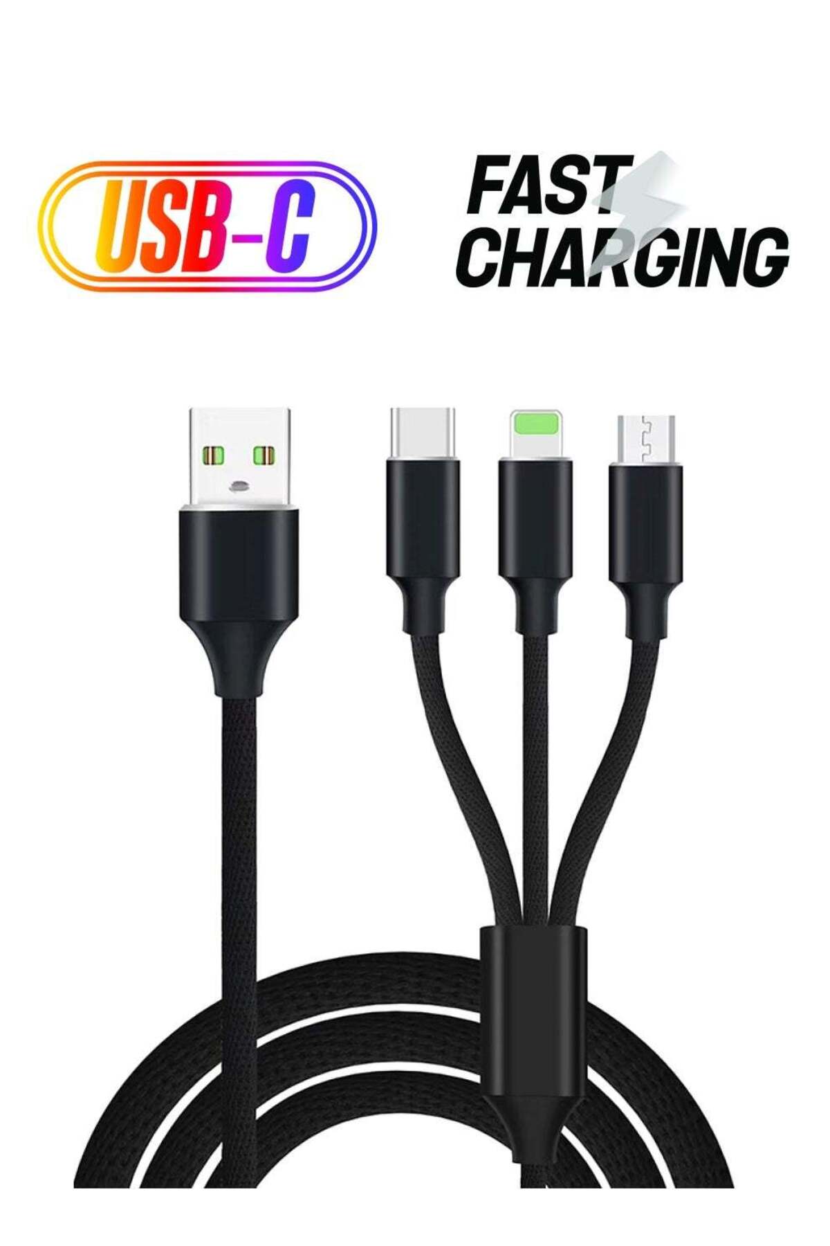 Generic كابل 3 في 1 مايكرو يو إس بي من النوع سي لايتنينج لمزامنة البيانات والشحن، أسود