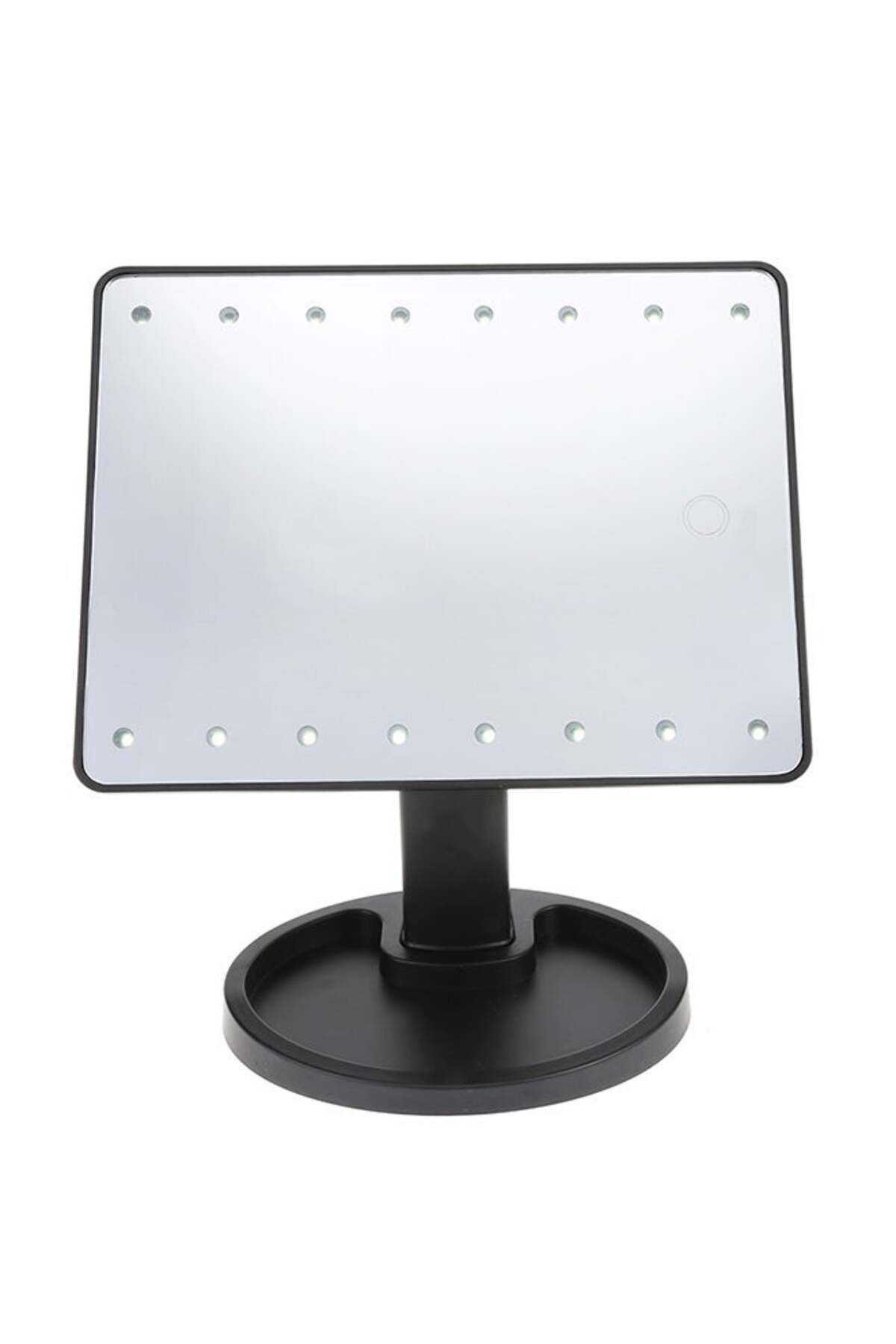 ميزات مرآة مكياج تعمل باللمس LED تدور 360 درجة باللون الأسود من Generic