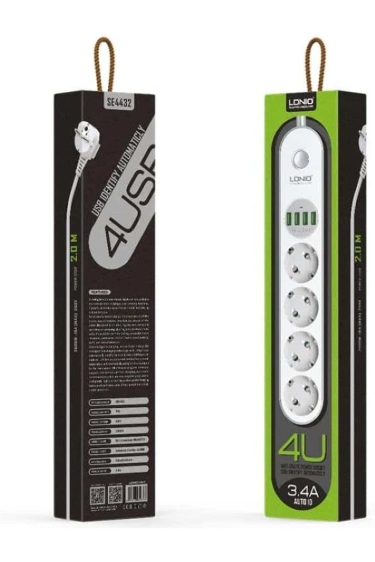 ميزات كابل تمديد شريط الطاقة بأربعة منافذ USB وأربعة اتجاهات بطول 2 متر من Generic