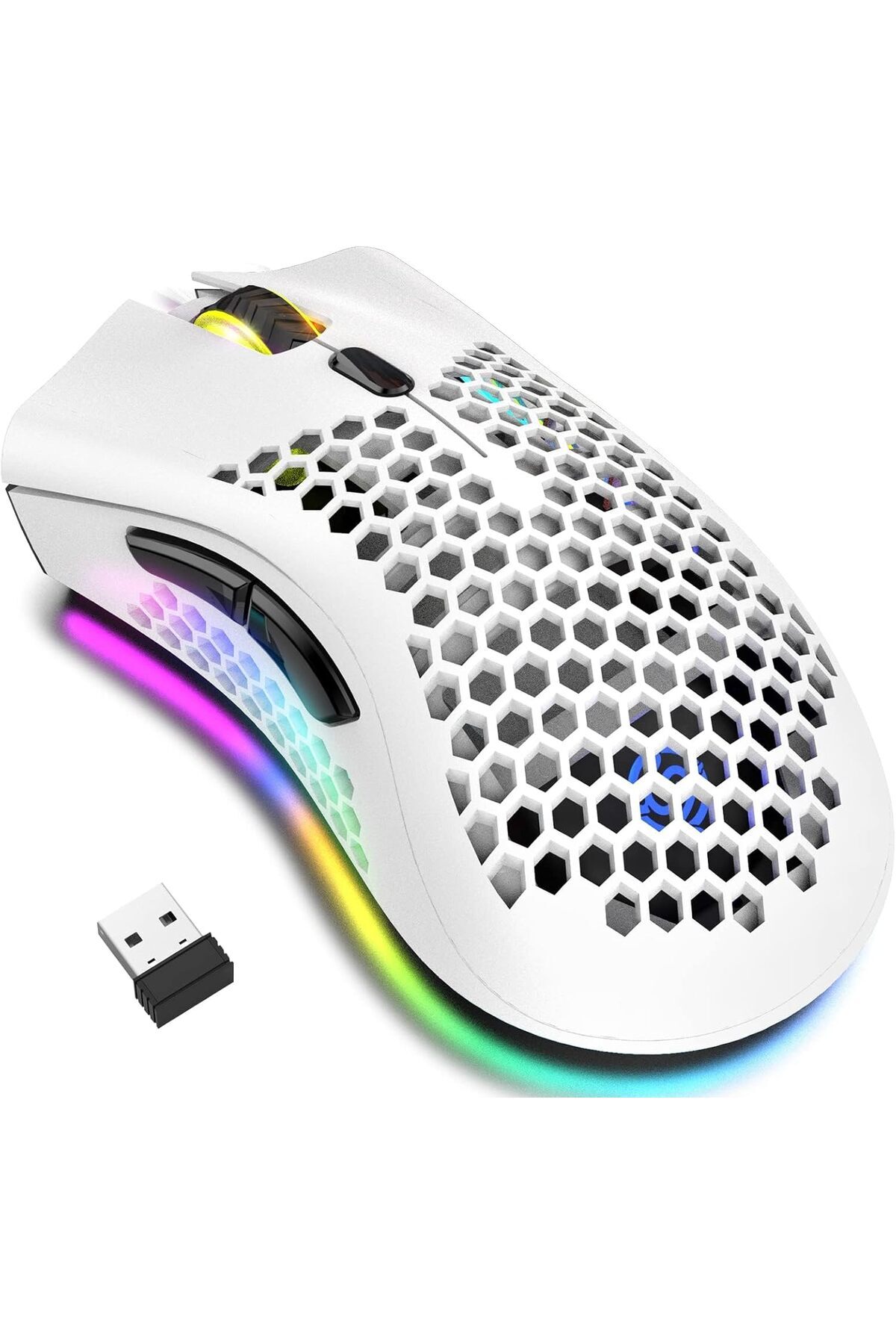 Generic فأرة ألعاب لاسلكية من Aookay، فأرة كمبيوتر بهيكل على شكل خلية نحل، 6 أزرار قابلة للبرمجة، 3 أزرار قابلة للتعديل