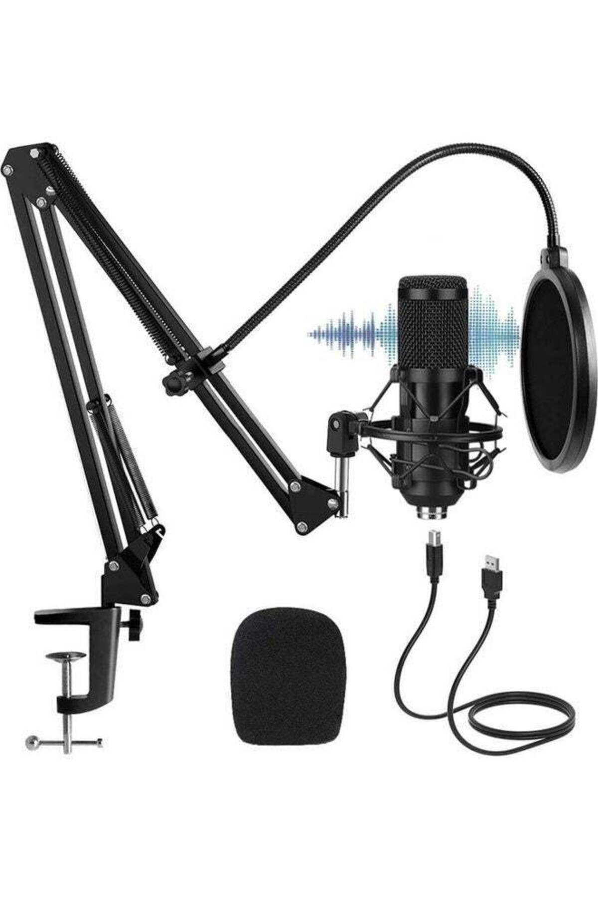 ميزات طقم ميكروفون مكثف USB من أرابيست مع حامل قابل للتعديل باللون الأسود من Generic