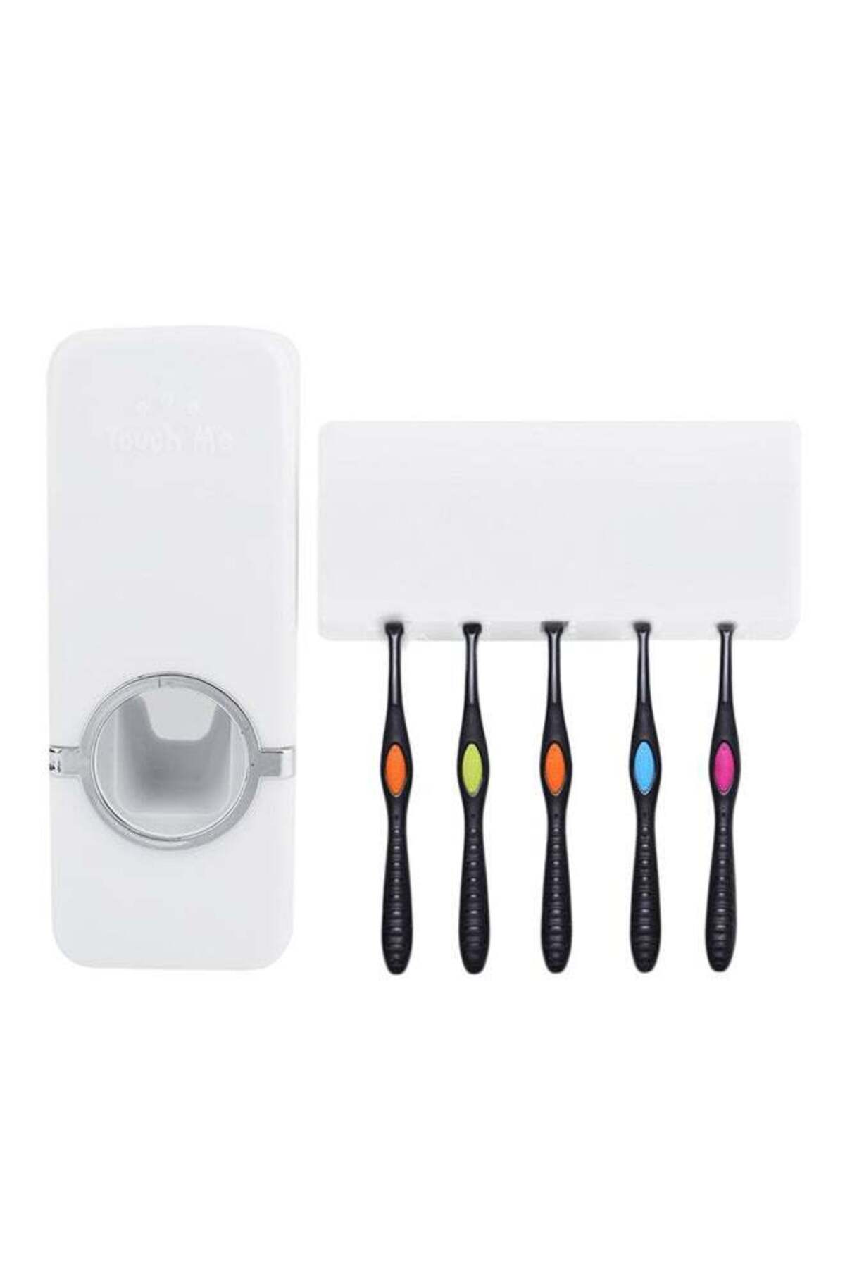 Generic مجموعة موزع معجون الأسنان الأوتوماتيكي وحامل فرشاة الأسنان باللون الأبيض