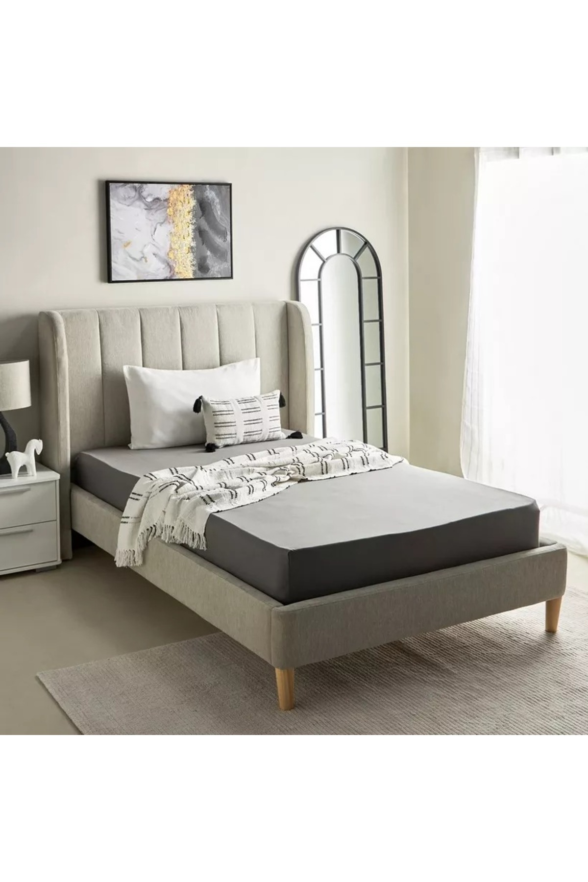 ميزات ملاءة سرير مزدوجة من القطن الأساسي - 120×200+36 سم من Generic