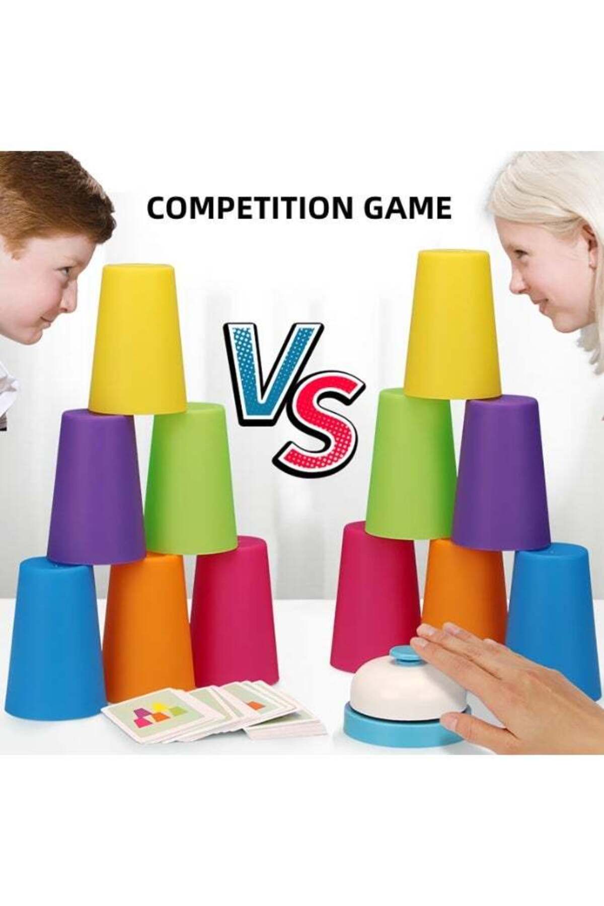 Enhancing Thinking, Logic, and Focus Through Competitive Speed Challenges; Ideal for Kindergarten, Family Fun, and Party Games for All Ages. This educational stacking game includes 6 colorful cups and 49 progressive challenge cards, designed to enhance problem-solving skills and focus. Crafted from food-grade PP plastic, these non-toxic stacking cups are smooth, drop-resistant, and child-safe. Match the color sequence, ring the bell, and win! Each round teaches children how to handle wins and losses, promoting emotional resilience and sportsmanship. Suitable for solo play or two players, it makes a great gift for boys and girls ages 3-8.