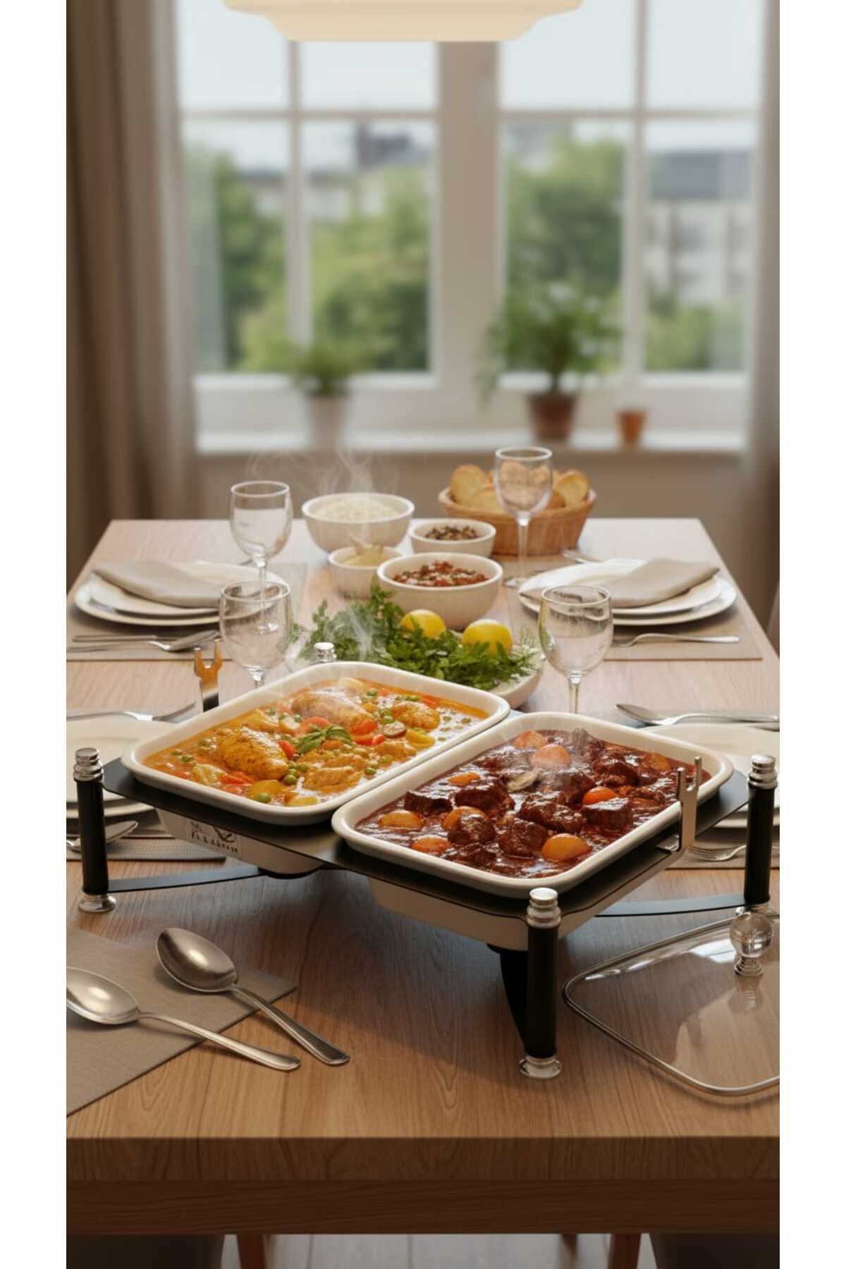 ميزات سخان بوفية صحن تقديم الطعام مستطيل ثنائي 12 سم بتصميم عصري وأنيق من Generic