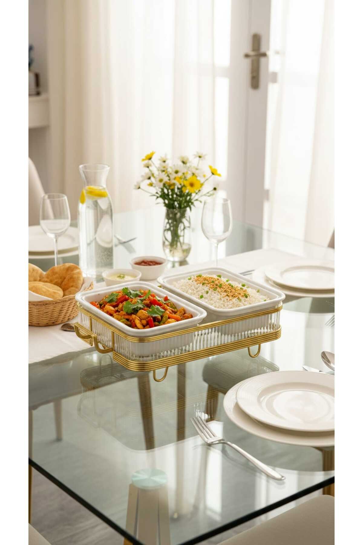 ميزات سخان بوفية صحن تقديم الطعام مستطيل ثنائي 12 سم بتصميم فريد وأنيق من Generic
