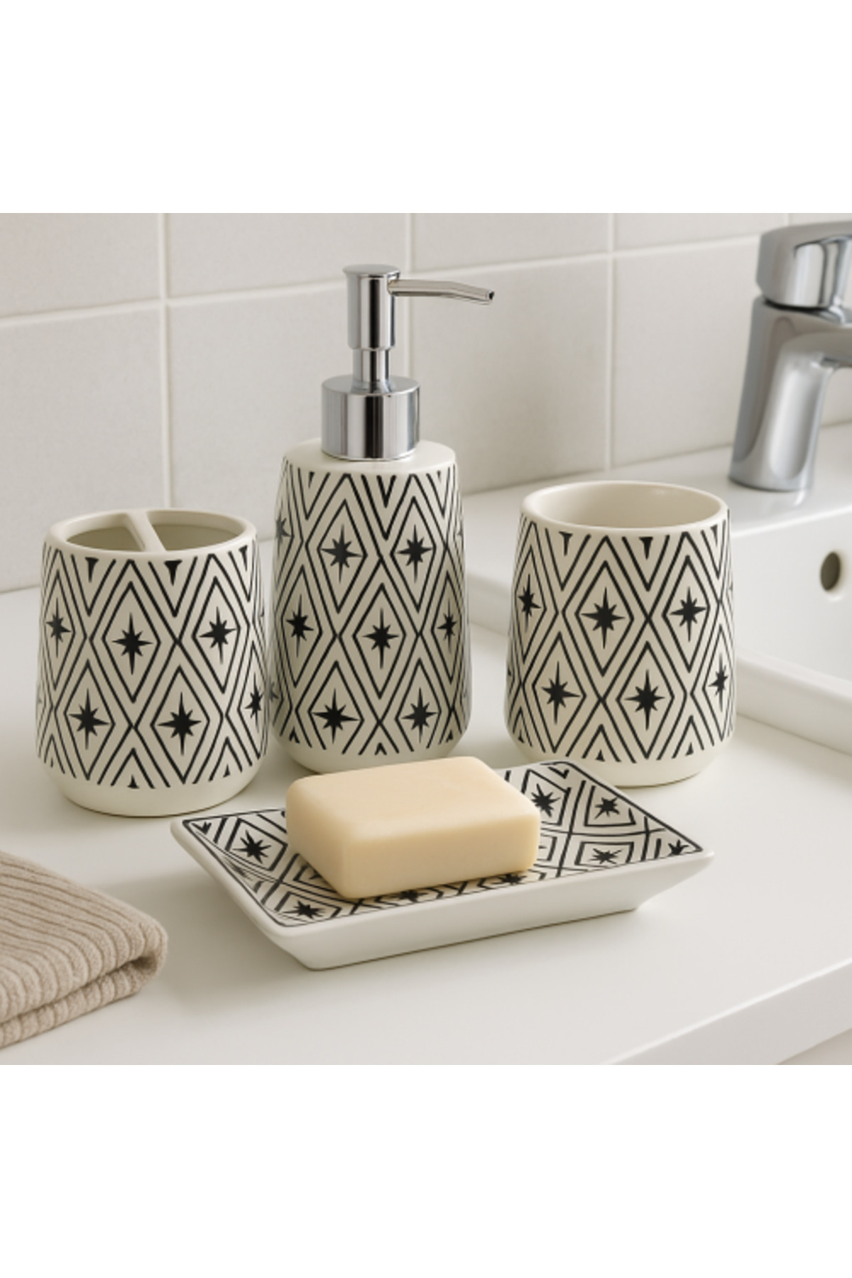 Generic طقم إكسسوارات حمام من السيراميك بنمط هندسي (4 قطع)