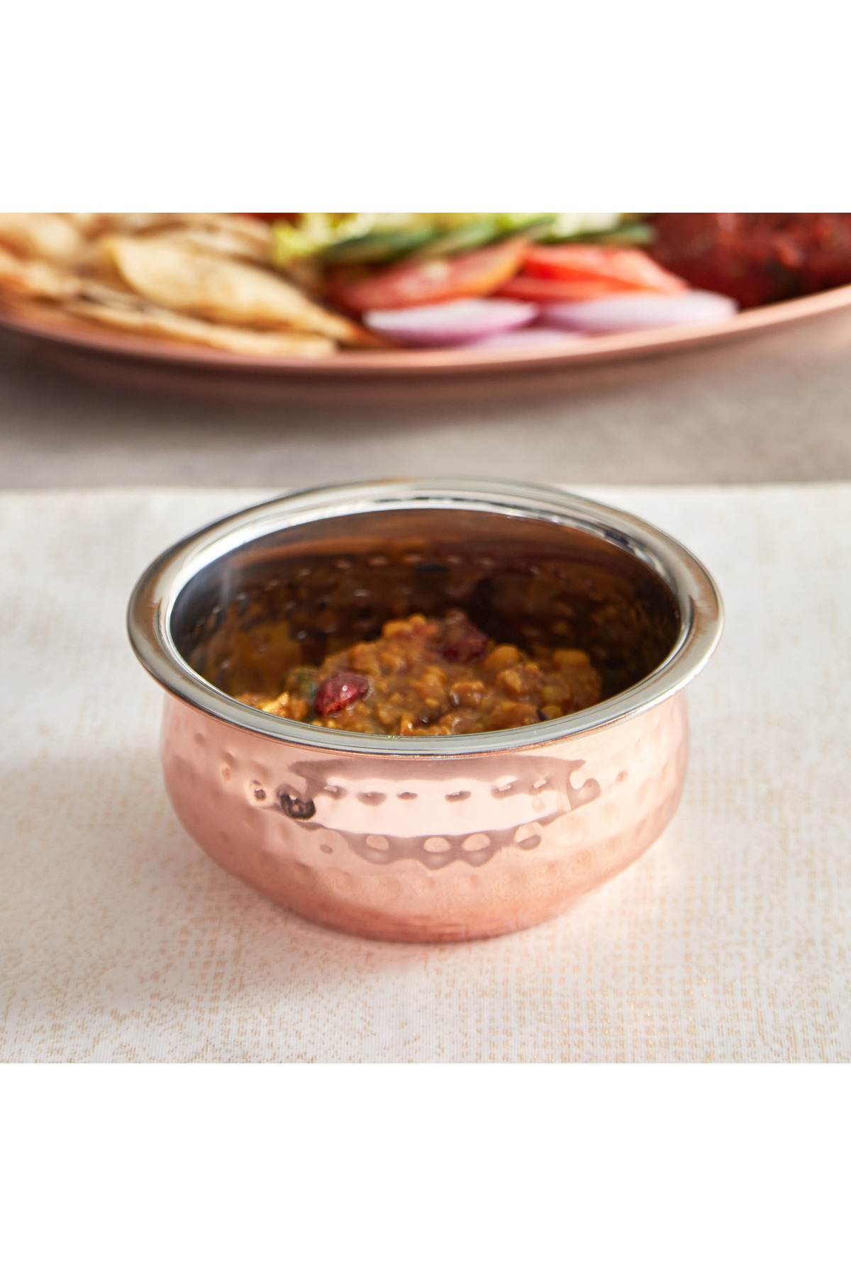ميزات وعاء تقديم نحاسي لامع مع لمسة نهائية مطروقة من Generic