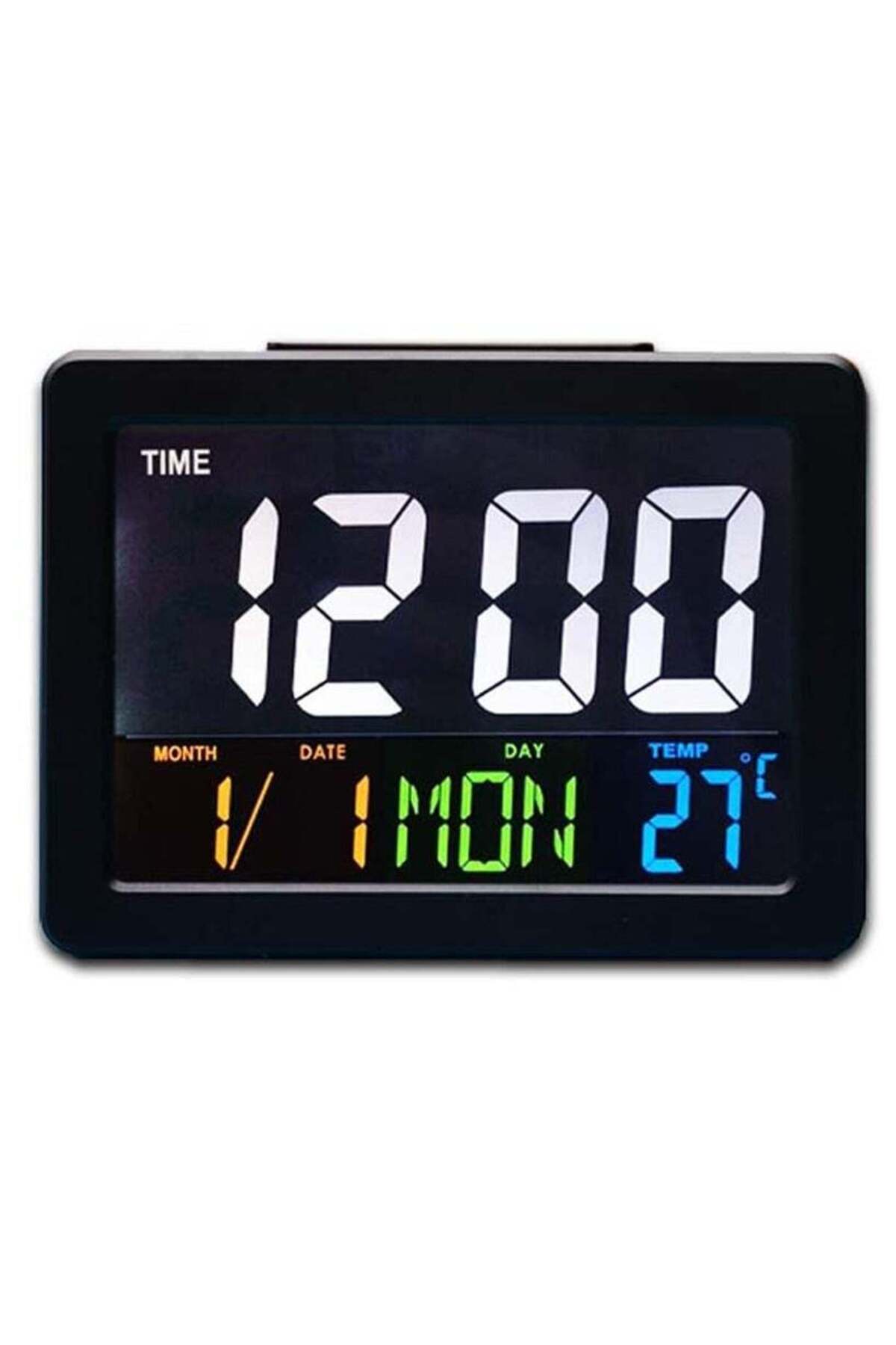 Generic ساعة مكتب كروني LED الرقمية - ساعة منبه LED كبيرة الحجم بجانب السرير مع التاريخ ودرجة الحرارة | أسود