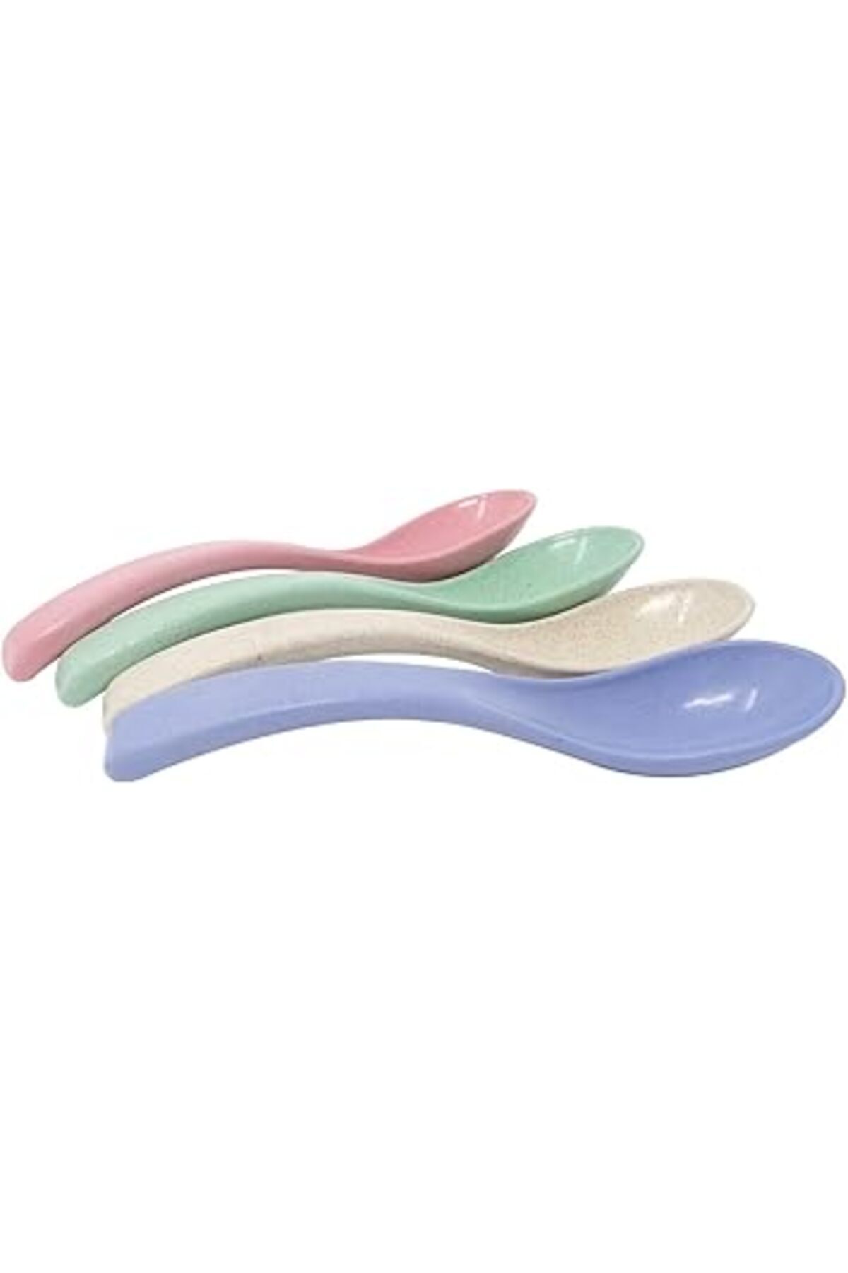 Generic مجموعة من 4 ملاعق من قش القمح من فنون المطبخ، قابلة لإعادة الاستخدام للحساء والحبوب، ملعقة عشاء غير قابلة للكسر، من بور