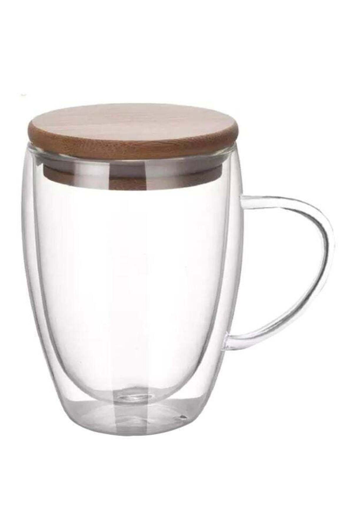 Generic كوب زجاجي مزدوج الطبقات شفاف/بني