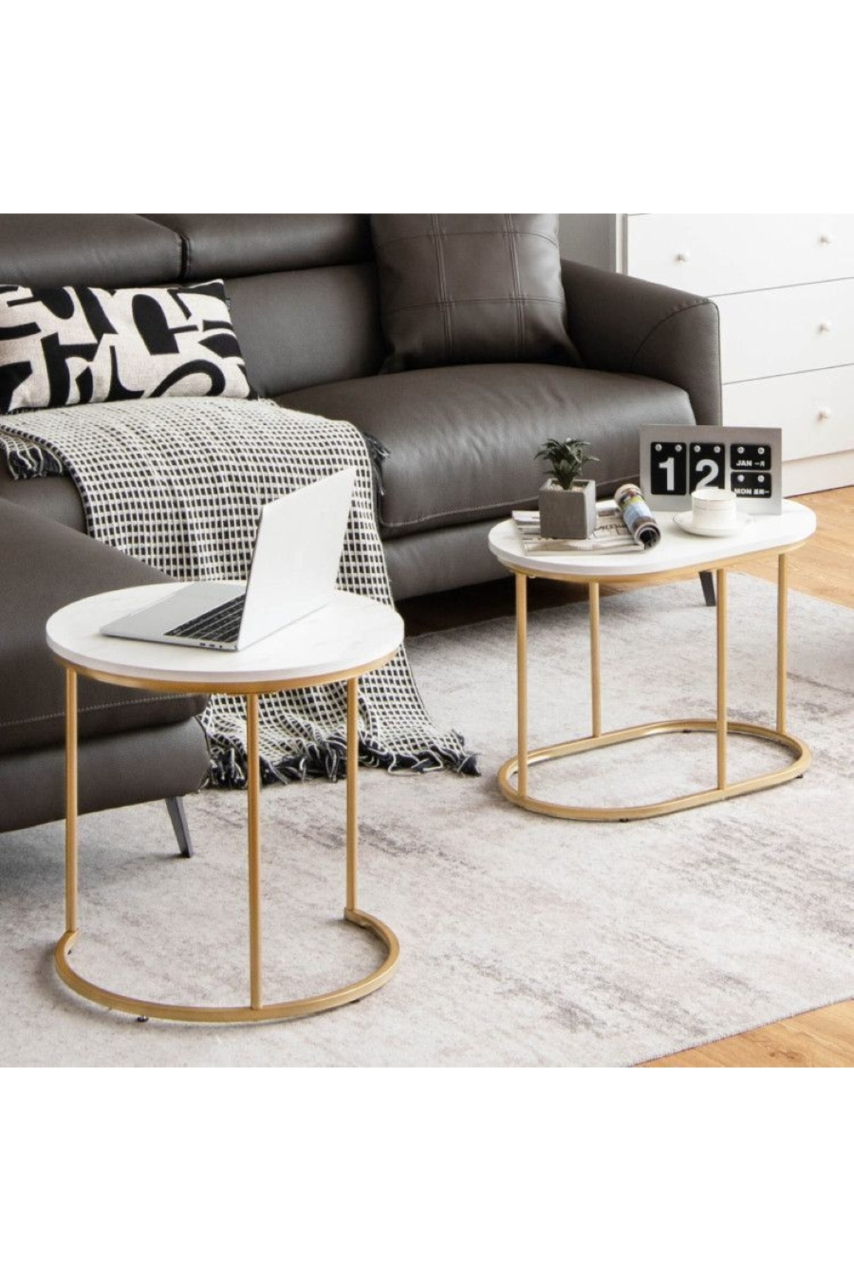 ميزات طاولات جانبية دائرية مزدوجة من Generic
