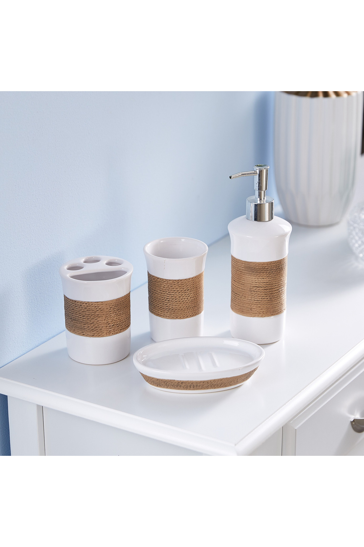 ميزات طقم إكسسوارات حمام من السيراميك مكون من 4 قطع من خيوط الجوت من Generic