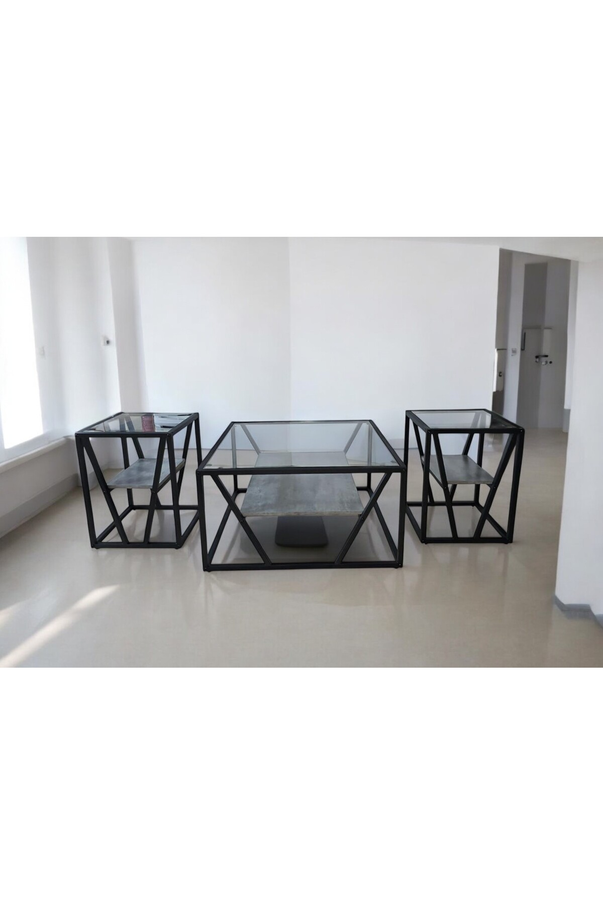 Generic طقم طاولة تقديم زجاجية فاخرة مكون من 3 قطع