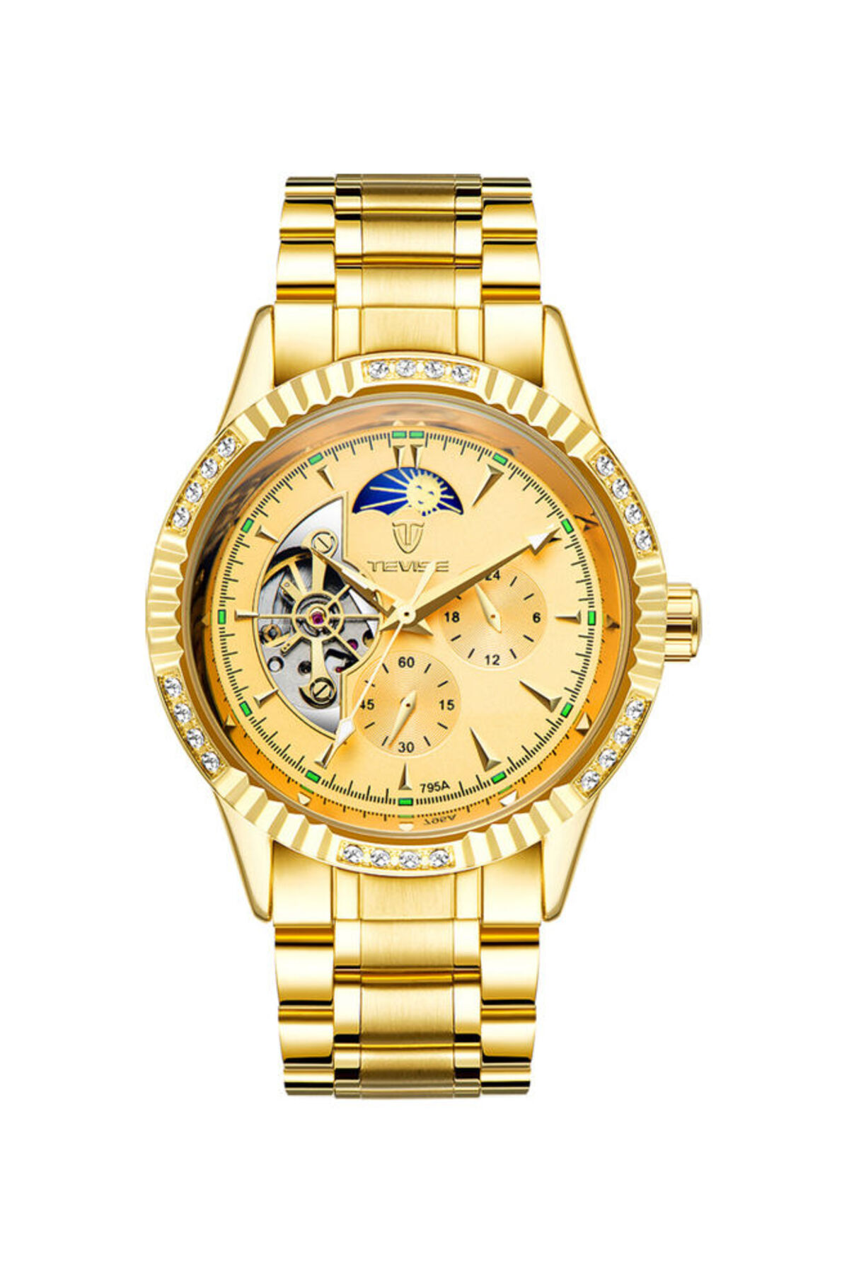 ميزات ساعة ميكانيكية رجالية باللون الذهبي الكامل من Generic