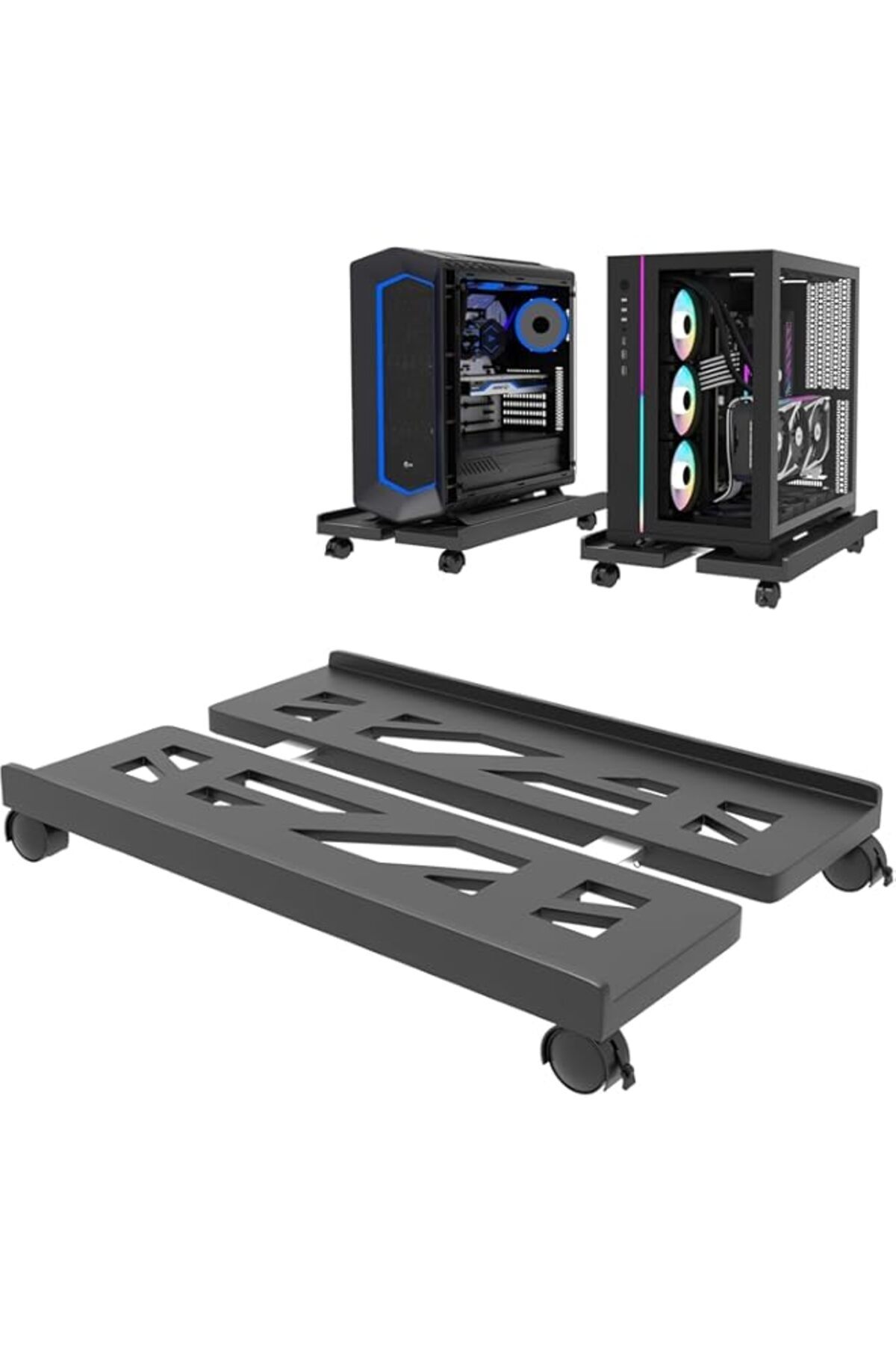 Generic حامل وحدة المعالجة المركزية المحمول، حامل عربة الكمبيوتر القابل للتعديل مع عجلات دوارة قابلة للقفل - أسود