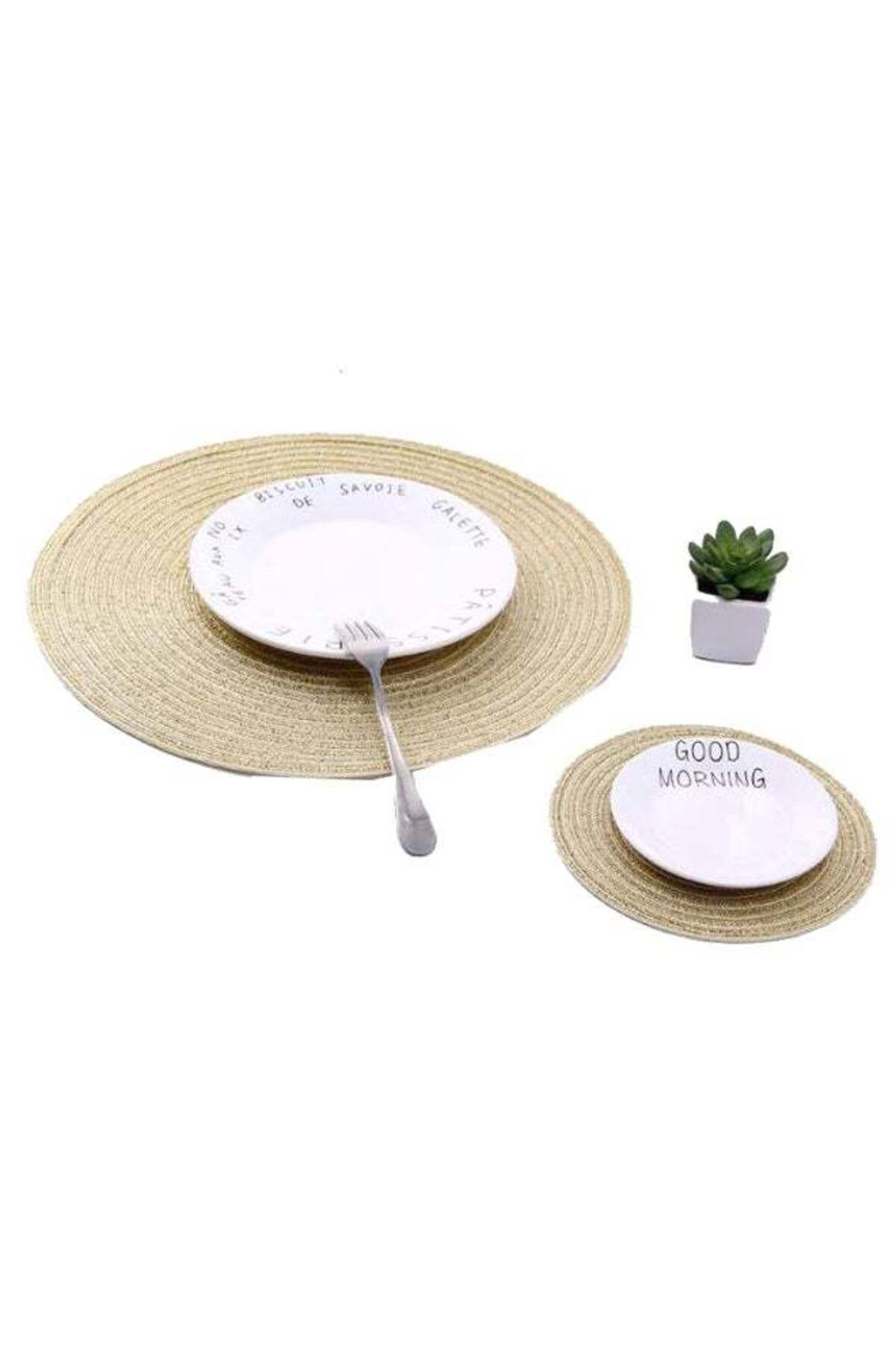 Generic مفرش طاولة دائري الشكل من بان كوستر، ذهبي، 18 سنتيمتر