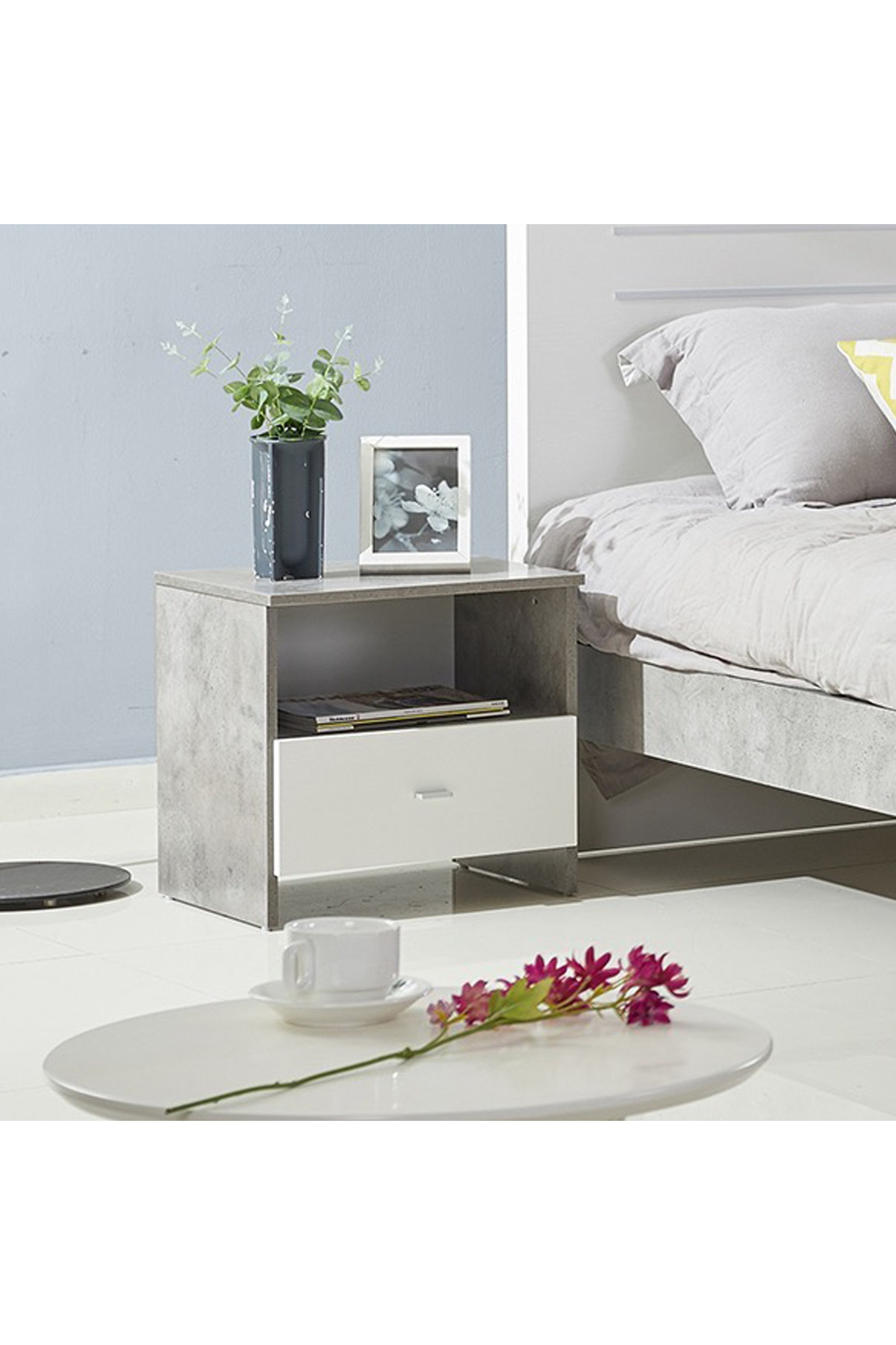 ميزات طاولة جانبية باتارا ذات درج واحد من Generic