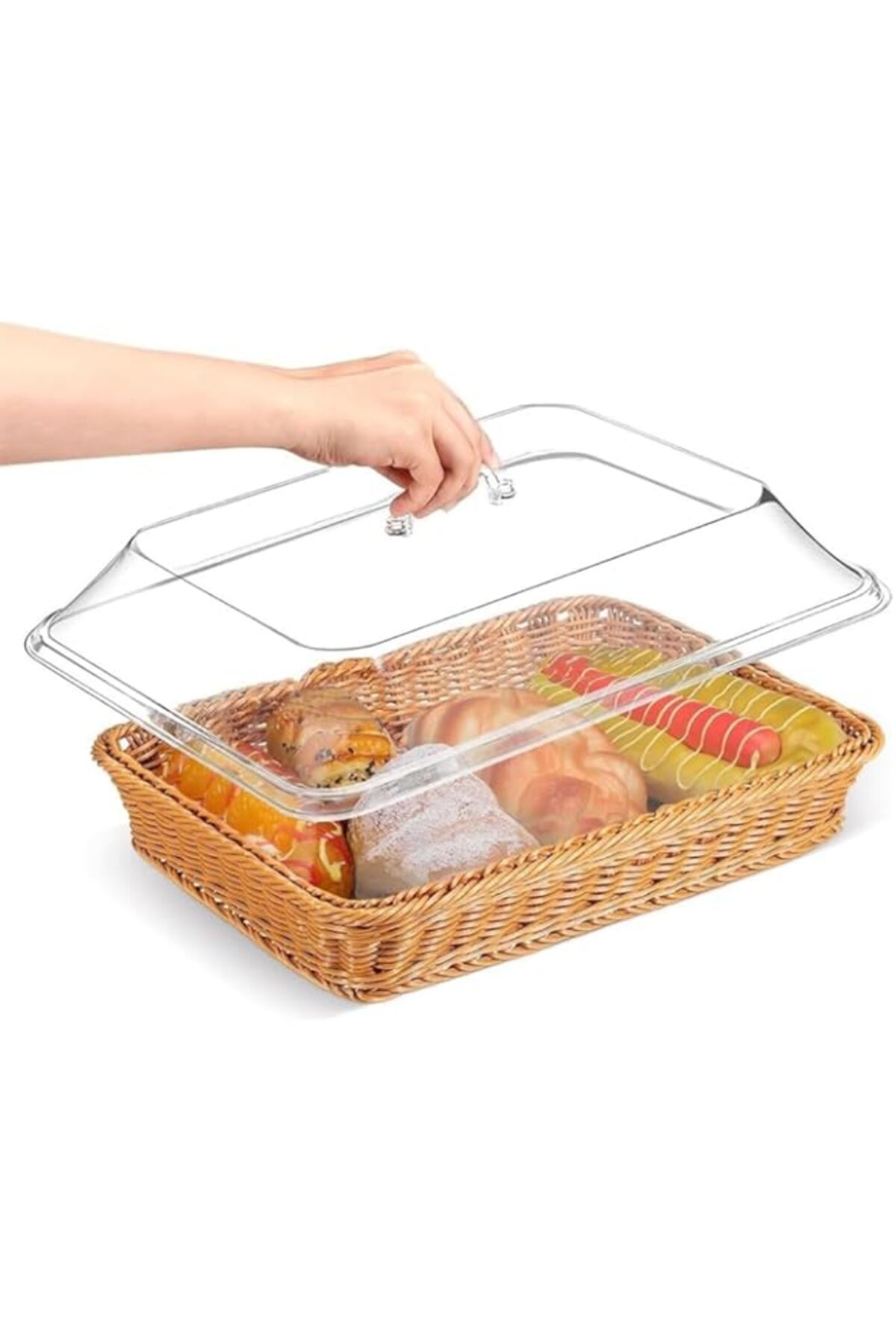 Generic سلة خبز من البولي ويكر، سلة تقديم طعام منسوجة من الروطان الصناعي، مستطيلة قابلة للتكديس