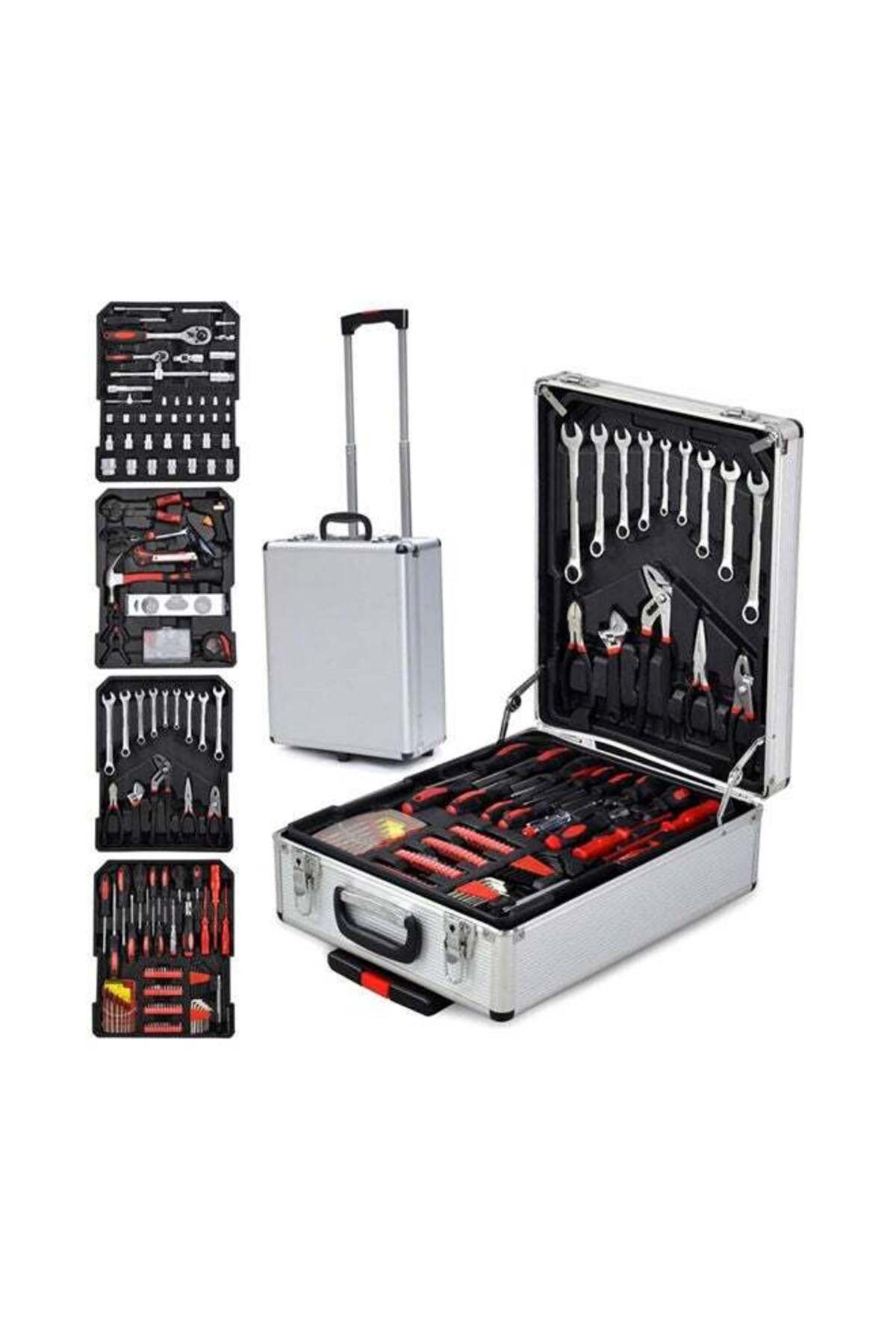 187 parça profesyonel kırmızı/gümüş renkli elektrikli alet seti, %30 indirim, ücretsiz teslimat, yılın en düşük fiyatı.