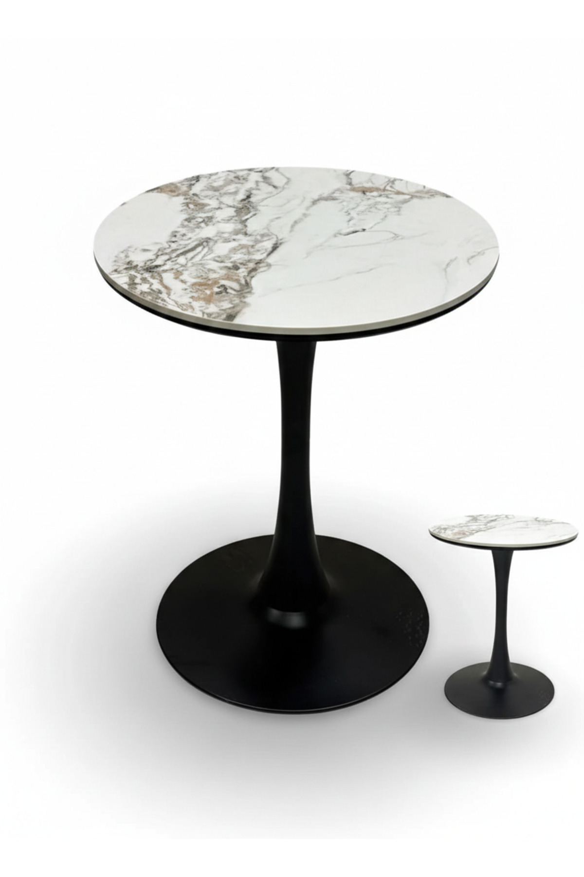 Generic طاولة مقهى دائرية من الرخام الأبيض النقي - 60 سم
