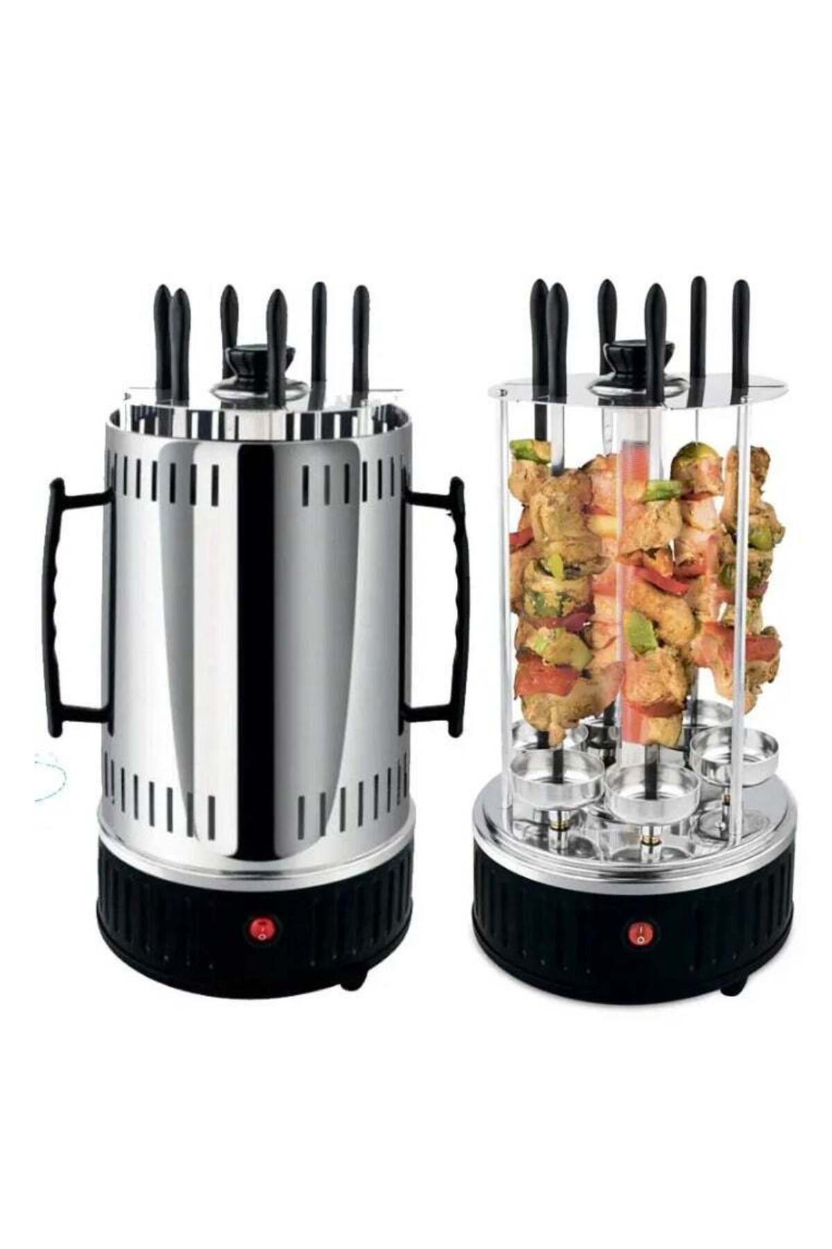 Vertical Rotating Design for uniform heat distribution, Smokeless Operation for indoor and outdoor use, Adjustable Temperature Control for various meats, Large Capacity to cook multiple skewers simultaneously, Easy to Clean with removable trays and non-stick surfaces, and Durable & Safe construction with high-quality stainless steel and overheating protection