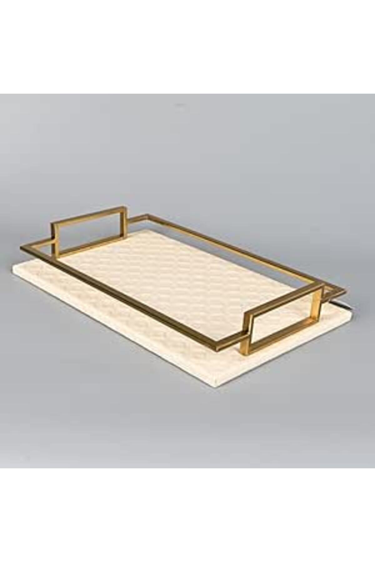 ميزات Rectangular Serving Tray Beige Leather with Copper Frame 40x26 cm من Generic