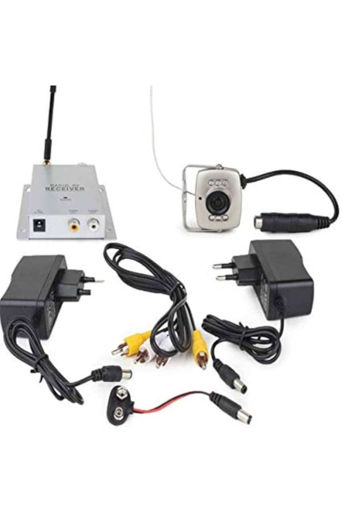 Wireless CMOS camera, receiver, antenna, camera adapter, and receiver adapter included
