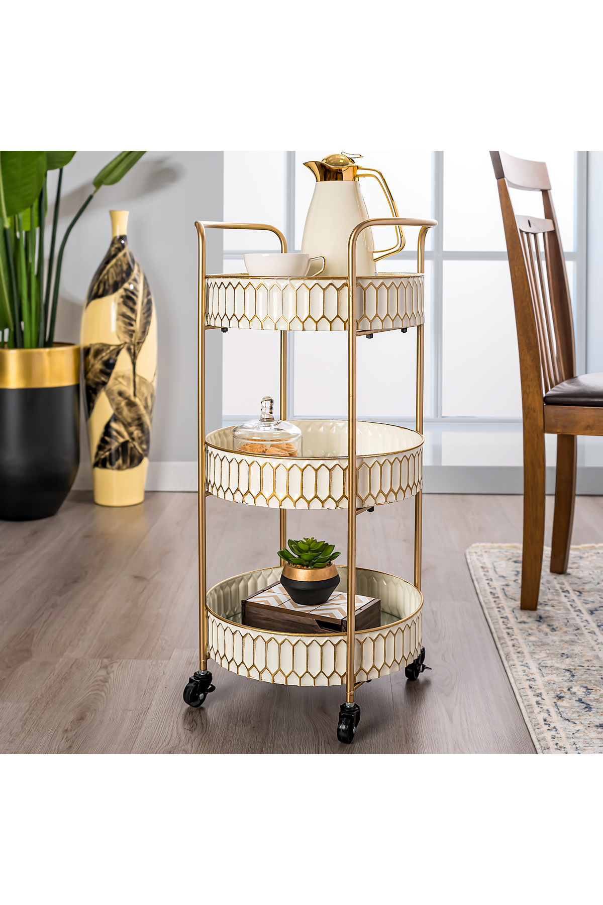 Generic عربة تقديم مستديرة مكونة من 3 طبقات