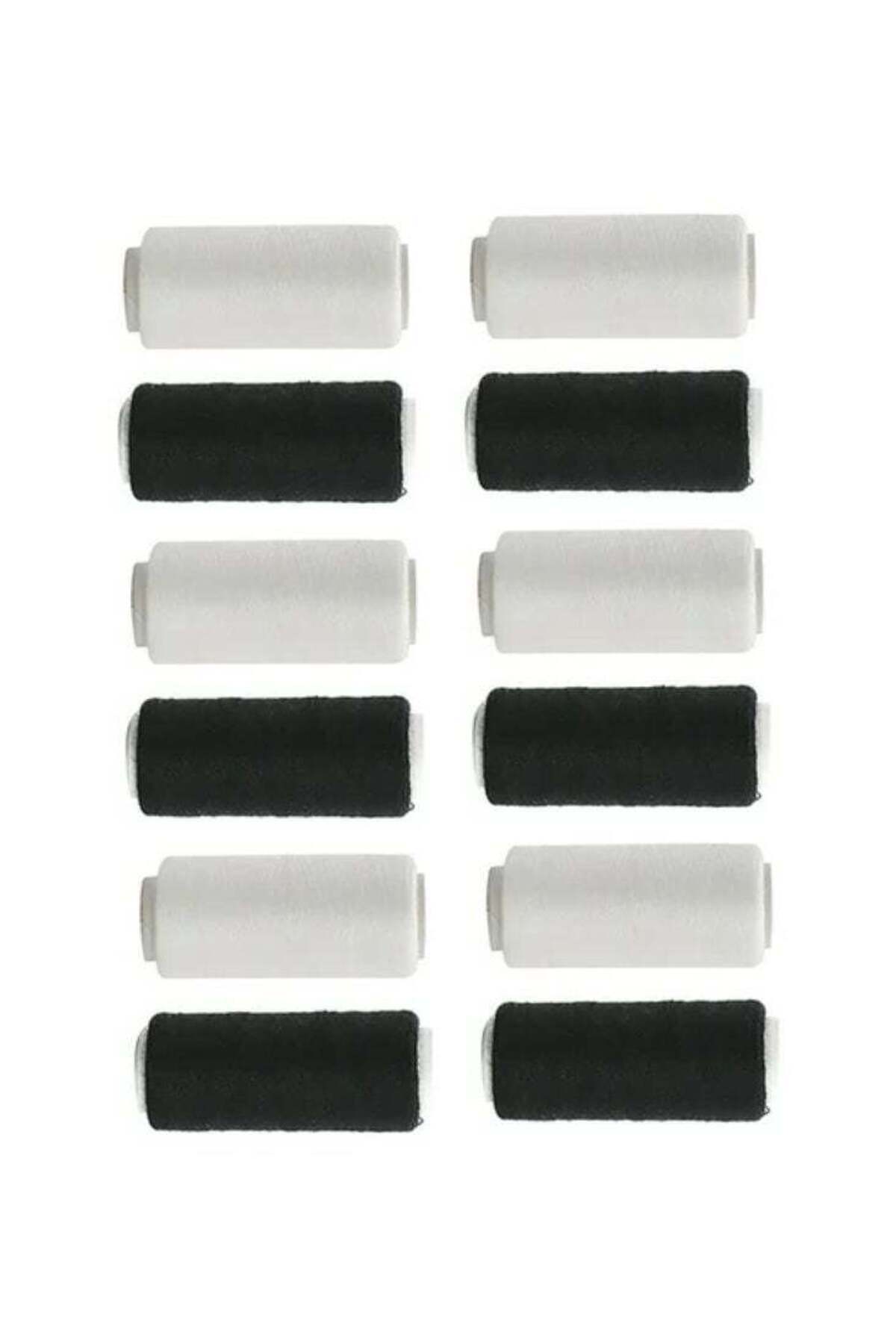 Generic مجموعة بكرات خيوط الخياطة - 12 قطعة من خيوط البوليستر باللونين الأبيض والأسود
