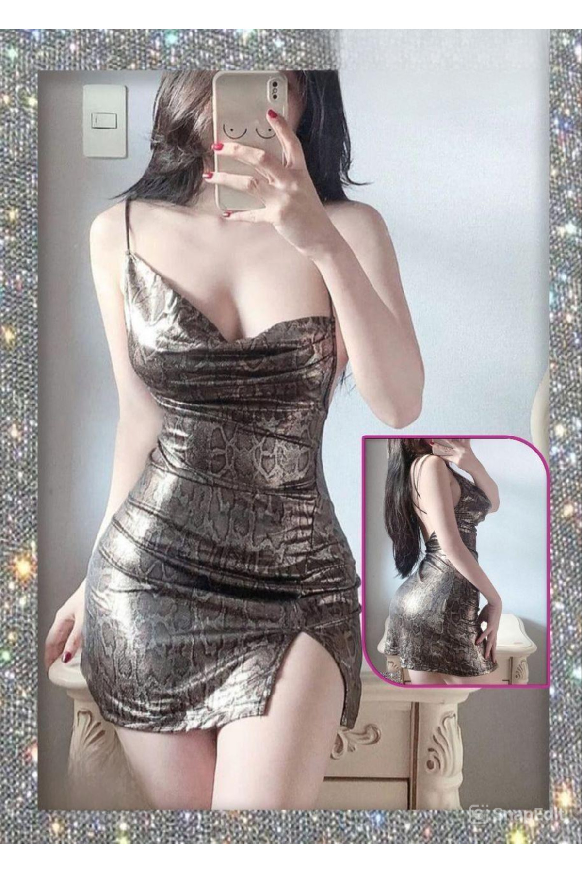 ميزات فستان ميني قصير لامع بنقشة مميزة من Generic