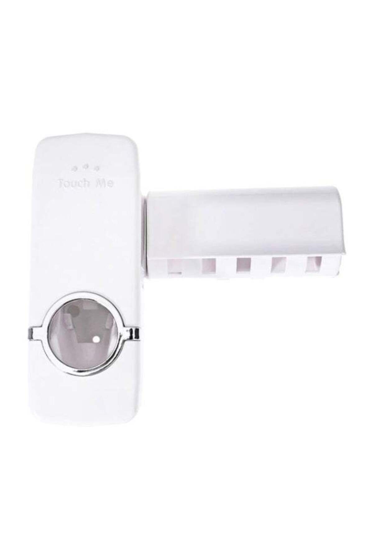 Generic مجموعة حامل فرشاة الأسنان وموزع معجون الأسنان الأوتوماتيكي باللون الأبيض
