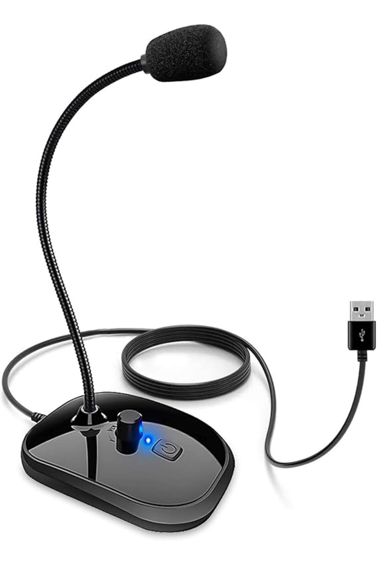 ميزات ميكروفون USB للكمبيوتر، ميكروفون كمبيوتر شخصي مزود بمقبض دوار للتحكم في مستوى الصوت وزر كتم الصوت، التوصيل والتشغيل، من Generic
