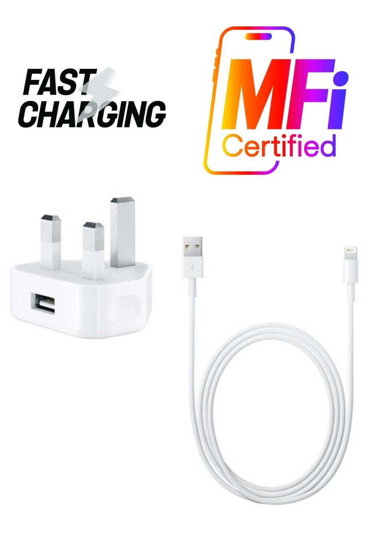 ميزات شاحن حائط USB مع كابل شحن ومزامنة بيانات Lightning باللون الأبيض من Generic