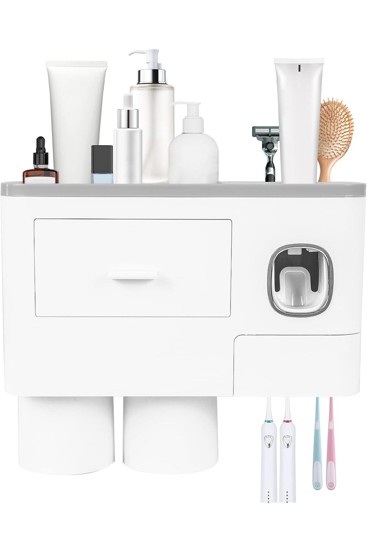 Generic حامل فرشاة أسنان ومعجون أسنان يُثبّت على الحائط مع كوبين
