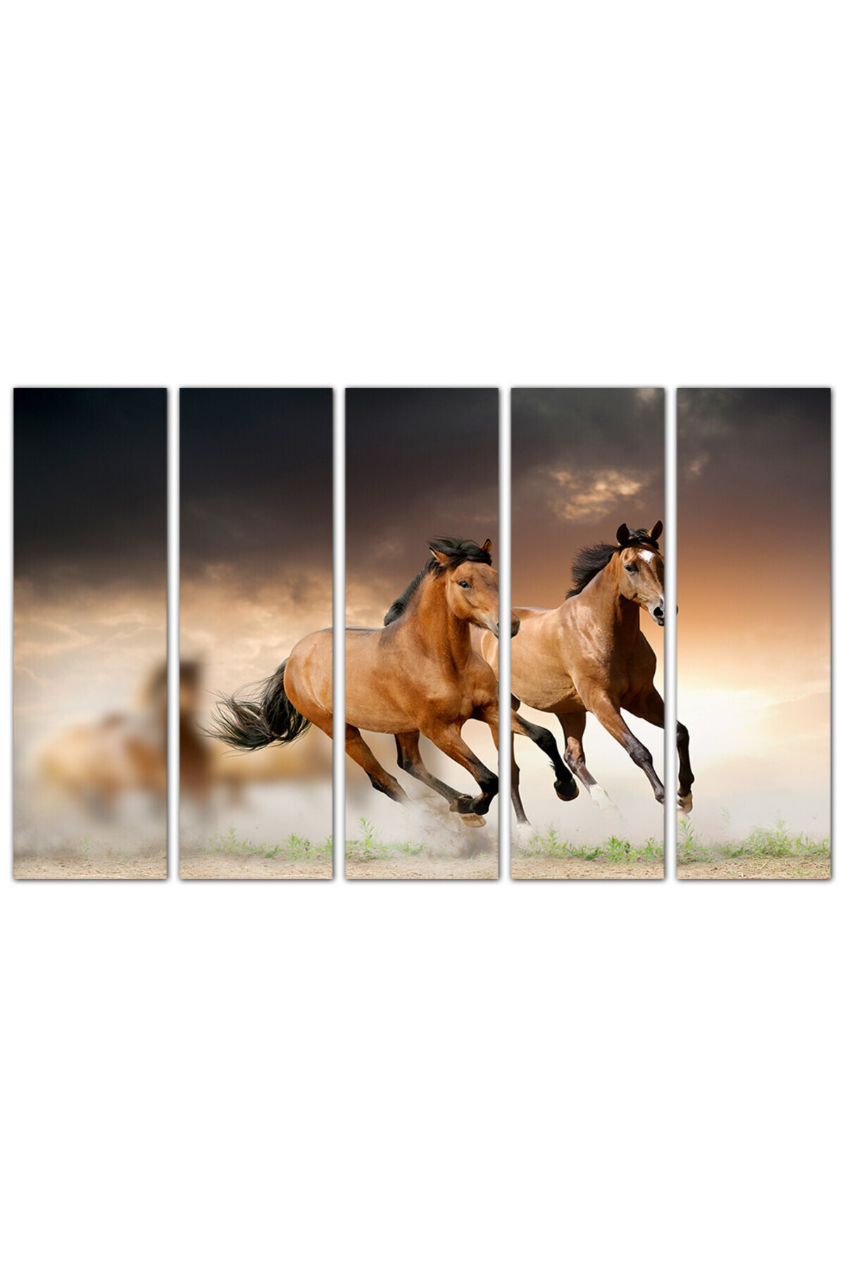 Generic لوحه جداريه - خيول تركض - ٩٤٣ - مقسمه خمسة قطع متساويه