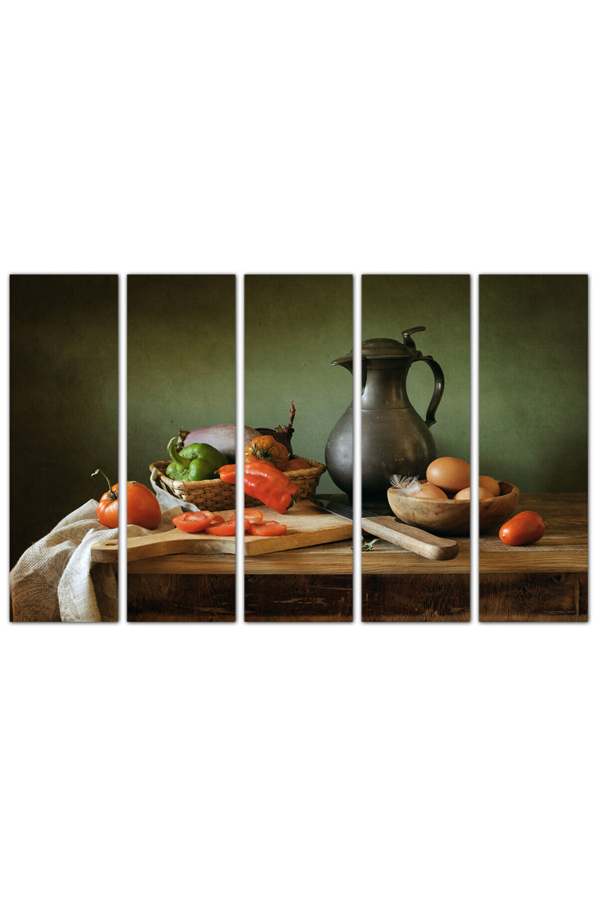 ميزات لوحه جداريه - خضروات و بيض - e109 - مقسمه خمسة قطع متساويه من Generic